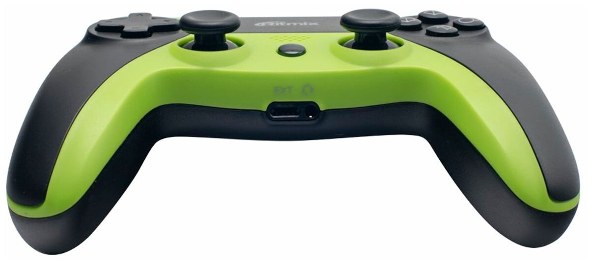 Геймпад Ritmix получает питание от встроенного аккумулятора, емкость которого составляет 600 мА·ч. Роль источника энергии исполняет USB-порт. Устройство, собранное в корпусе эргономичной формы, имеет не слишком значительную массу: величина этого показателя равна 200 г.