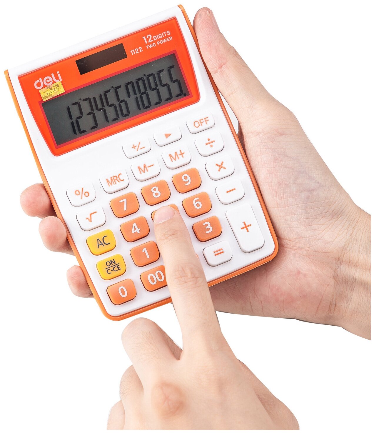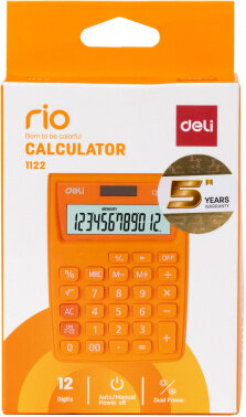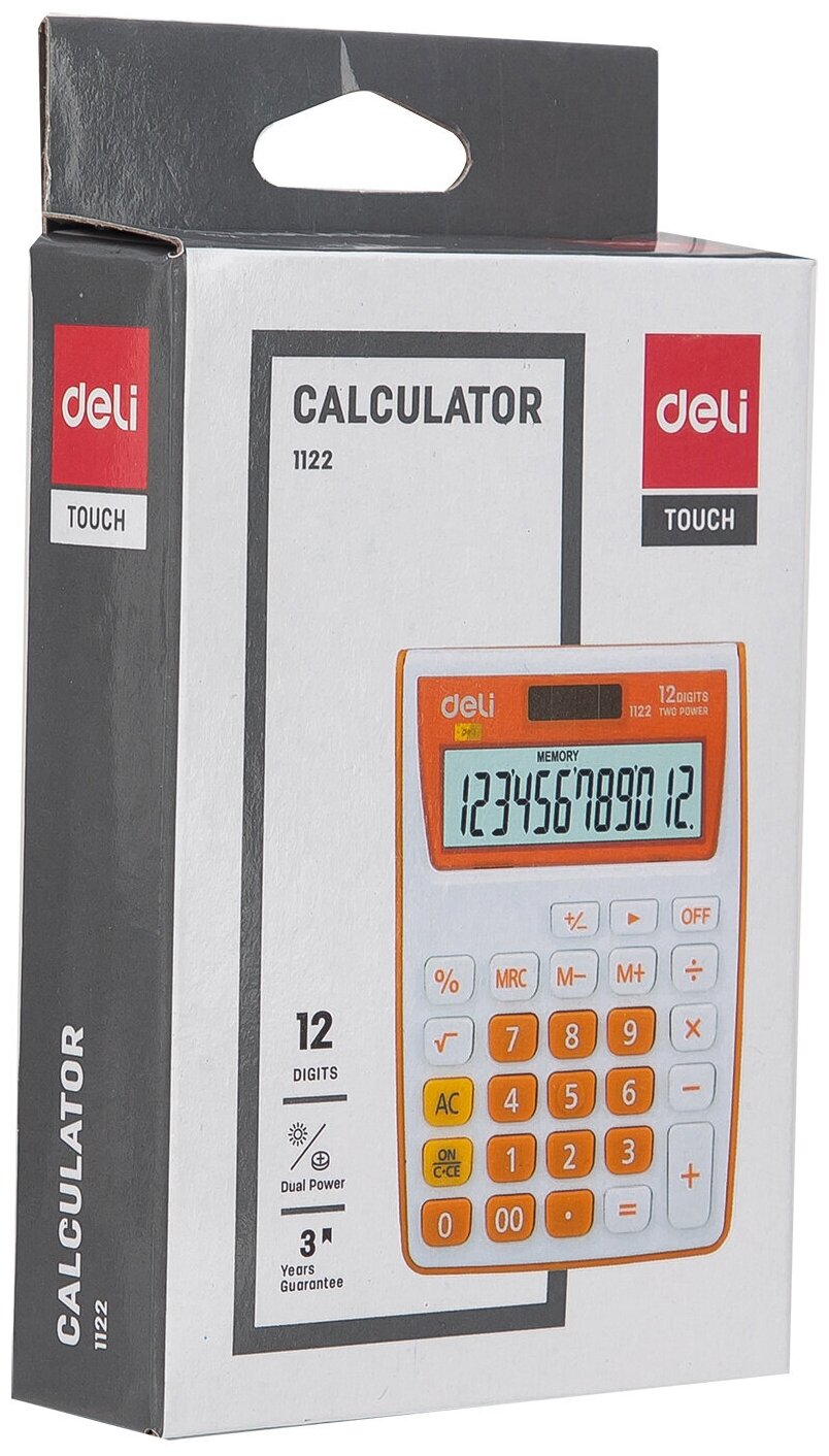 Калькулятор настольный Deli оранжевый, дисплей: 12-разрядный, 1, монохромный, питание комбинированное LR54 х 1шт.