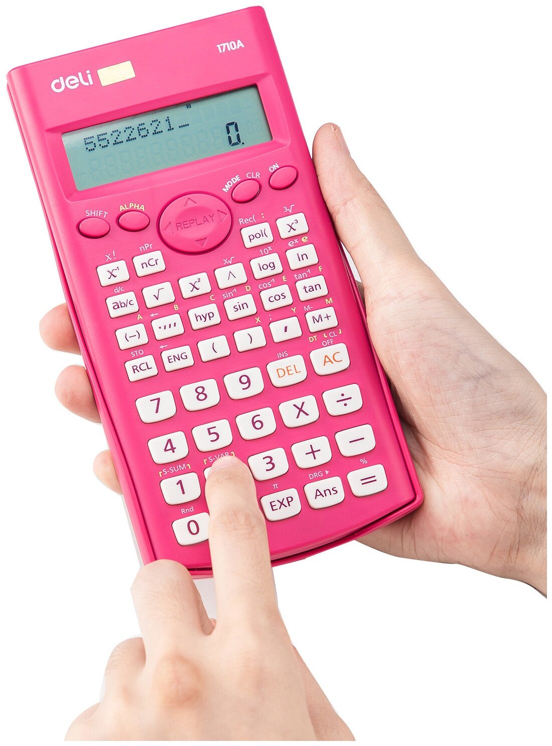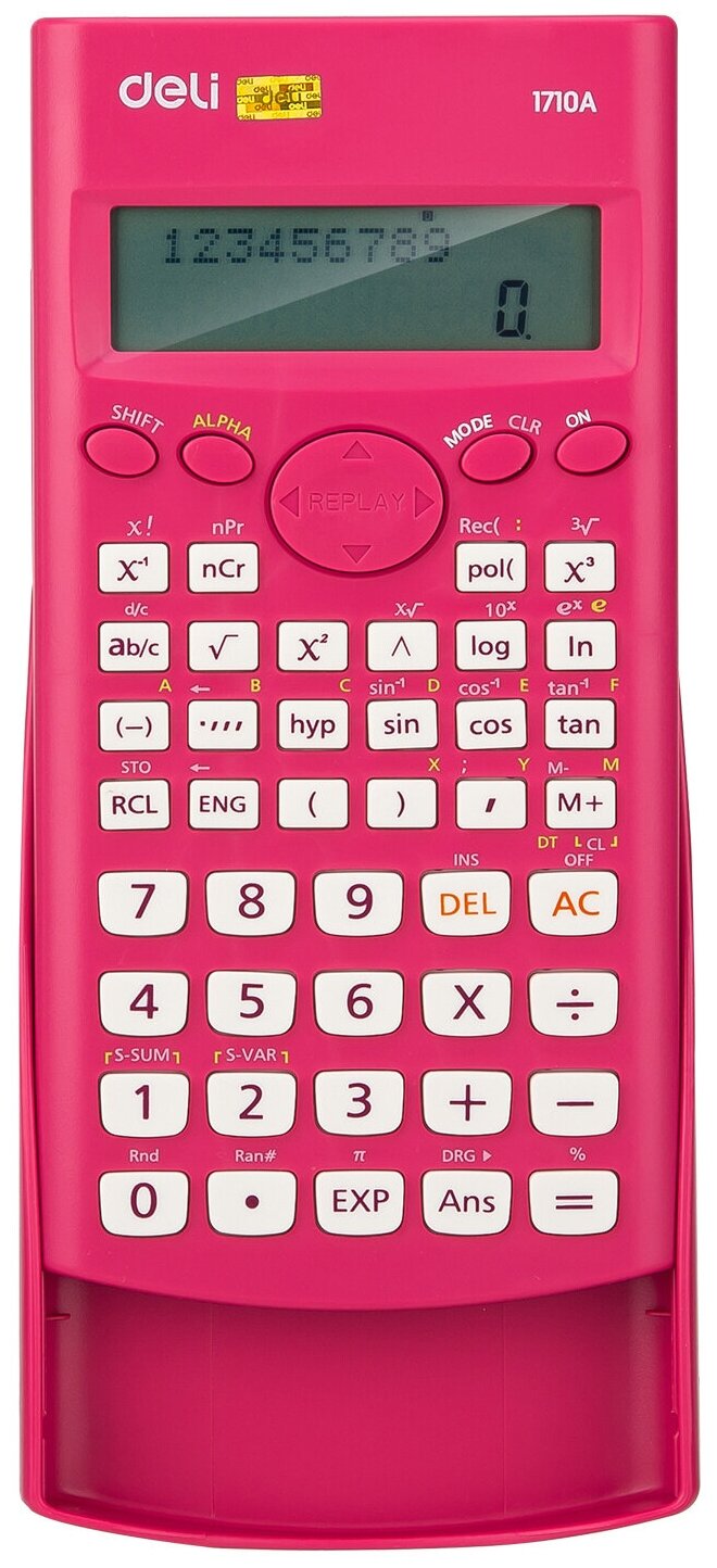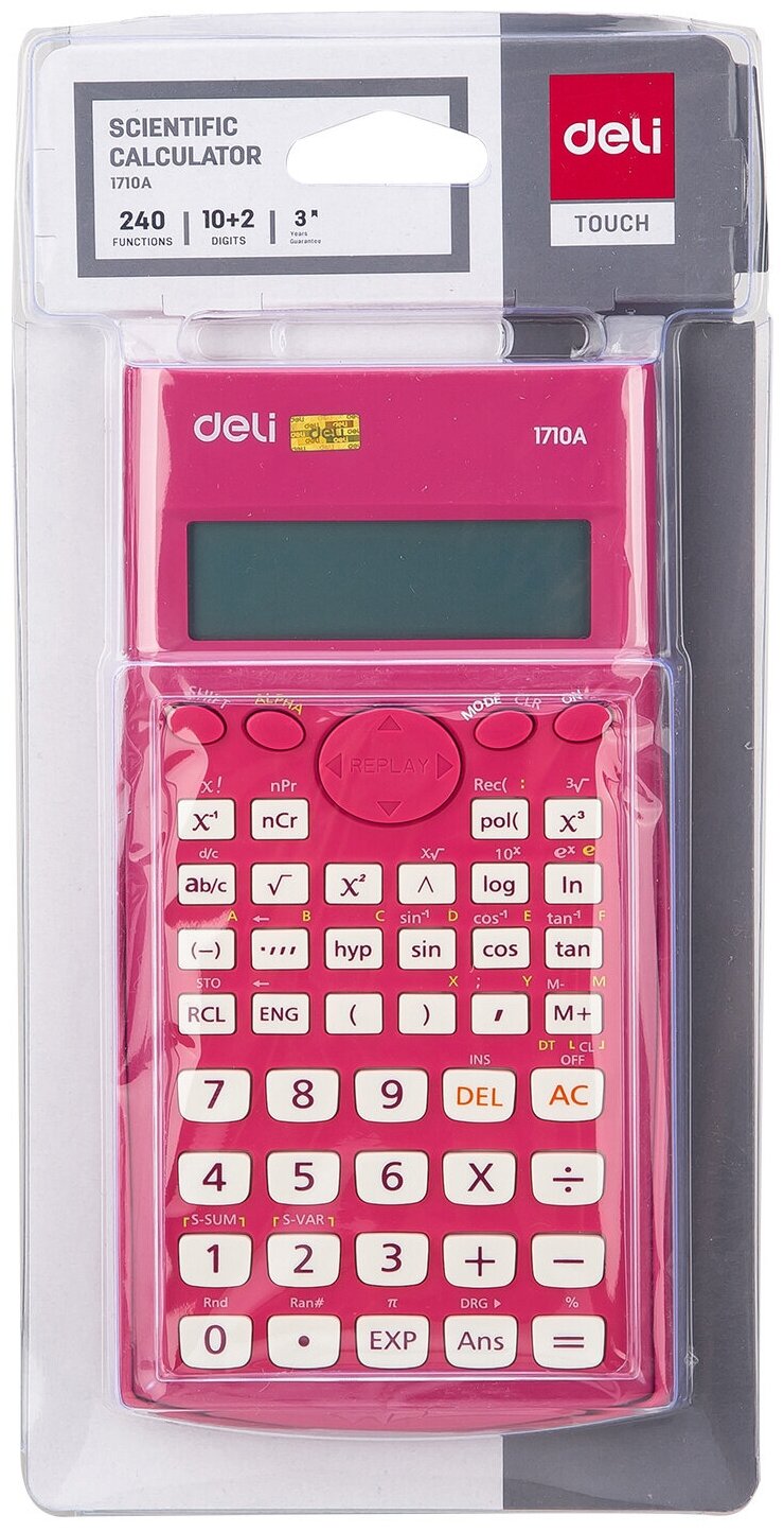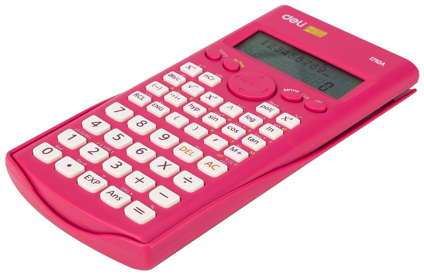 Калькулятор научный Deli красный, дисплей: 10+2-разрядный, двустрочный, монохромный, питание батарея LR54 х 1шт.