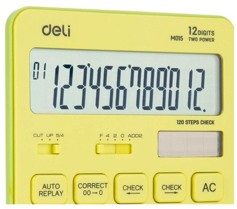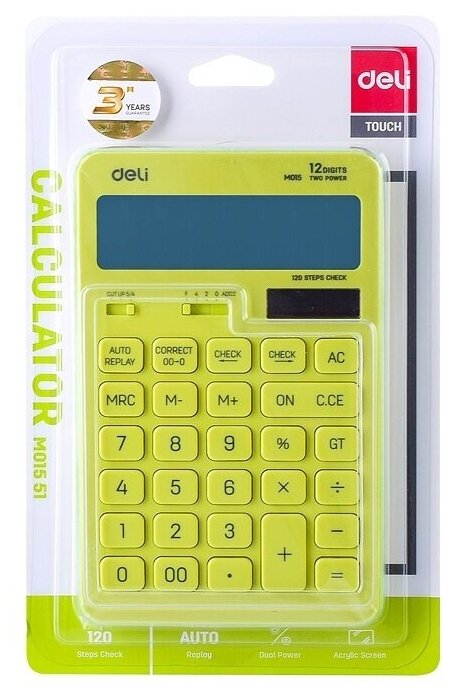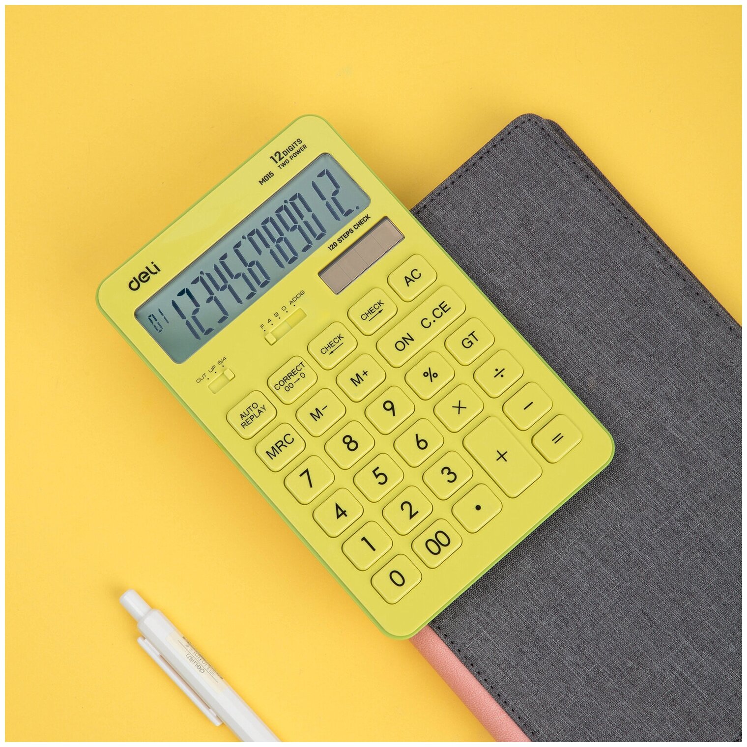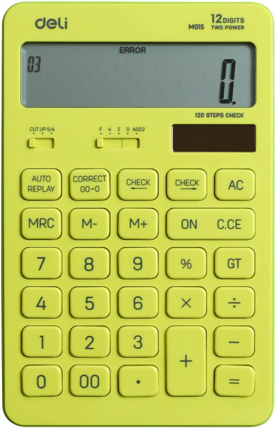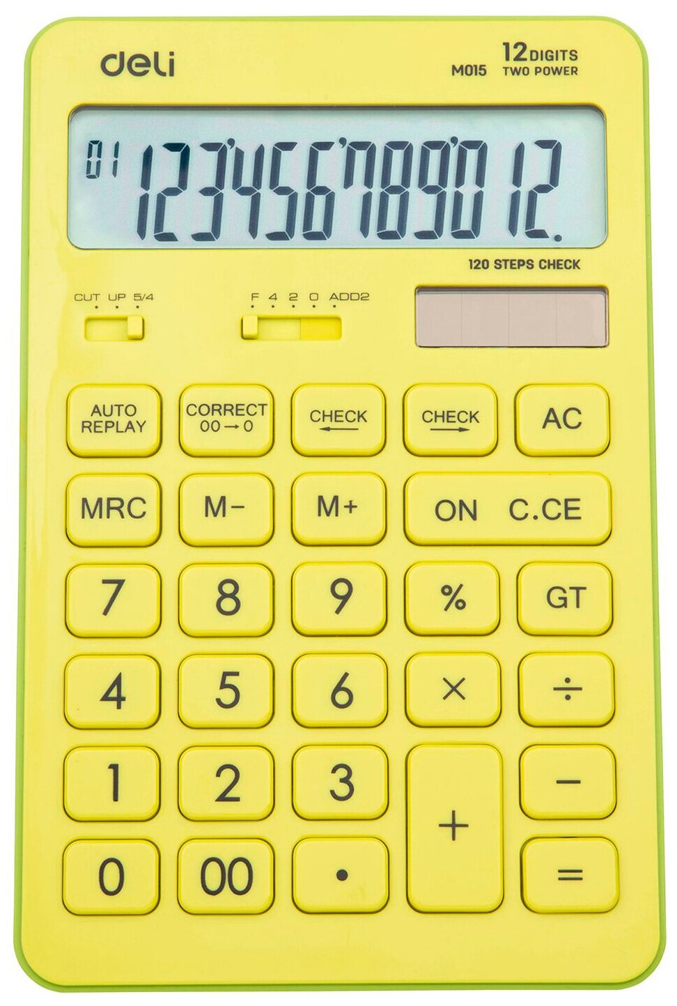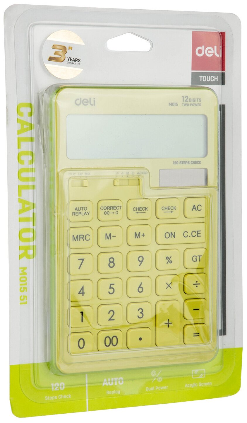 Калькулятор настольный Deli Touch желтый, дисплей: 12-разрядный, двустрочный, монохромный, питание комбинированное LR54 х 1шт.
