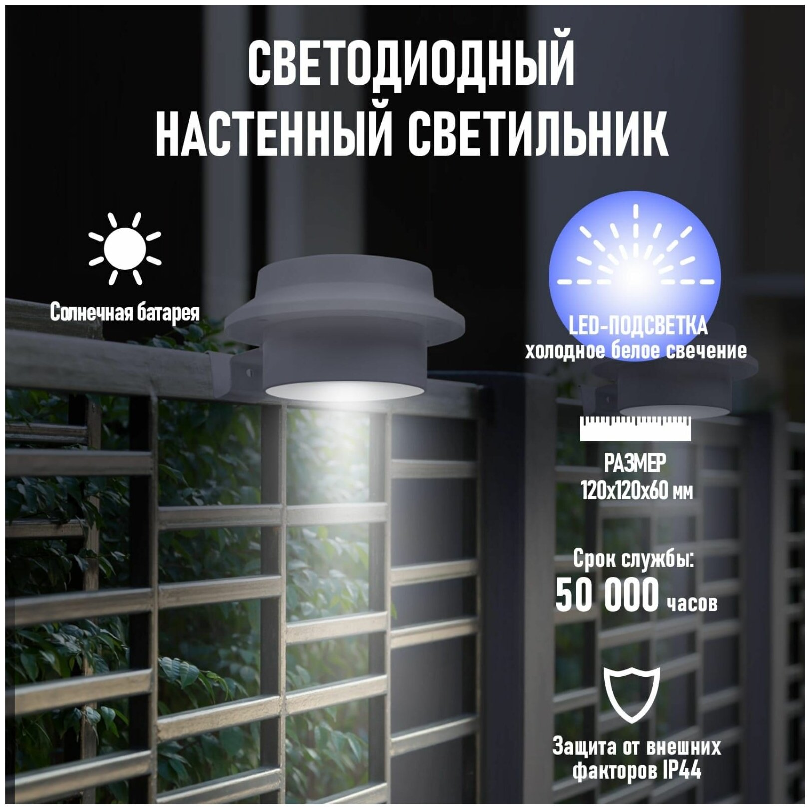 Светодиодный настенный светильник на солнечной батарее с кронштейном предназначен для автономного освещения в темное время суток перед входом в дом, сарай или гараж, для подсветки номера дома, ступеней на лестнице. Солнечные панели поглощают солнечный свет, заряжая аккумуляторную батарею. При наступлении темного времени суток, светильник автоматически включается.