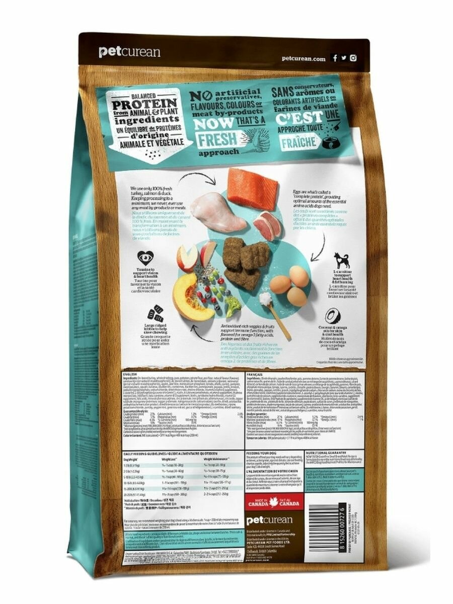 Состав: Свежее филе индейки, цельные сушеные яйца, картофель, горох, картофельная мука, натуральный ароматизатор, тапиока, семена льна, рапсовое масло (источник витамина Е), яблоки, свежее филе лосося, свежее филе утки, сладкий картофель, карбонат кальция, фосфат кальция, кокосовое масло (источник витамина Е), гороховая клетчатка, люцерна, морковь, тыква, бананы, черника, клюква, ежевика, папайя, чечевица, брокколи, шпинат, кабачок, гранат, сушеный корень цикория, сушеные водоросли, хлорид натрия, хлорид калия, экстракт водорослей, витамины (витамин А, витамин D3, витамин Е, инозитол, ниацин, L-аскорбил-2-полифосфатов (источник витамина С), D-пантотенат кальция, мононитрат тиамина, бета-каротин, рибофлавин, пиридоксина гидрохлорид, фолиевая кислота, биотин, витамин В12), минералы ( комплекс метионина цинка, протеинат цинка, протеинат железа, протеинат меди, оксид цинка, протеинат марганца, сульфат меди, сульфат железа, йодат кальция, оксид марганца, дрожжи селена), DL-метионин, L-лизин,Lactobacillus, Enterococcus, Aspergillus, экстракт дрожжей, Новозеландские зеленые мидии, таурин, экстракт Юкка Шидигера, бархатцы, L-карнитин, сушеный розмарин, экстракт зеленого чая, перечная мята, петрушка, шиповник, зеодария, одуванчик, ромашка, имбирь, куркума, фенхель, ягоды можжевельника , солодка, кардамон, гвоздика.