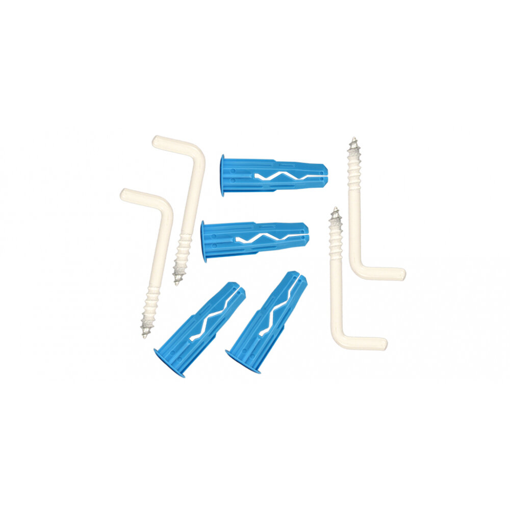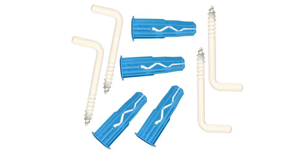 Комплект универсального крепежа предназначен для установки в любые материалы: бетон, камень, кирпич, газобетон, пенобетон, гипсокартон, гипсолитовая плита. Шестигранная форма дюбеля предотвращает проворачивание в стене, его широкий, но тонкий фланец препятствует продавливанию в стену. Материал дюбеля - нейлон. Материал крюка-шурупа L- обр. - электрооцинкованная сталь, окрашен в белый цвет.