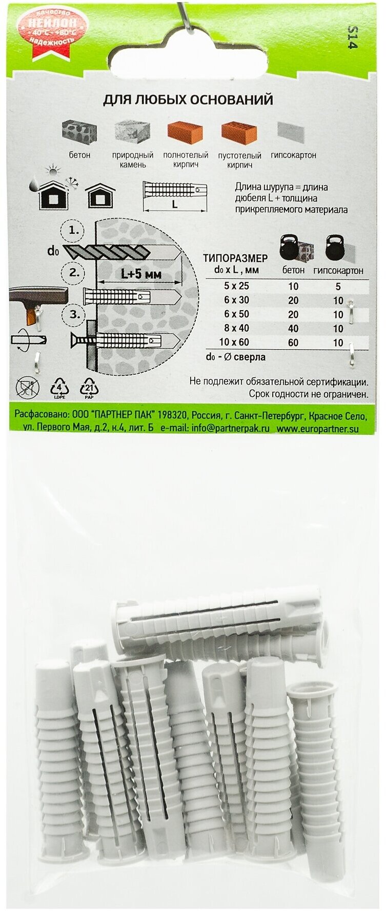 | Вид дюбеля | Универсальный дюбель ЕВРОПАРТНЕР |