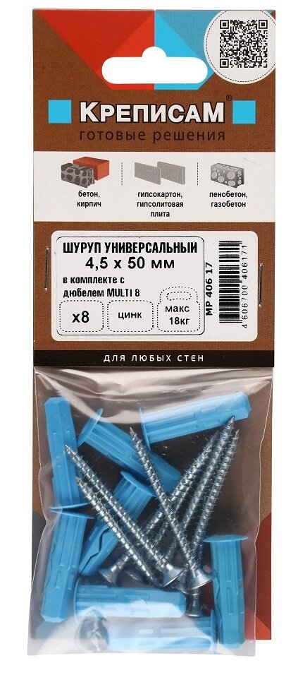 Сервис сравнения цен СкидкаГИД предлагает сравнить цены на товар «Дюбель универсальный MULTI 8x32 с шурупом универсальным 45х50 8 шт Европартнер»