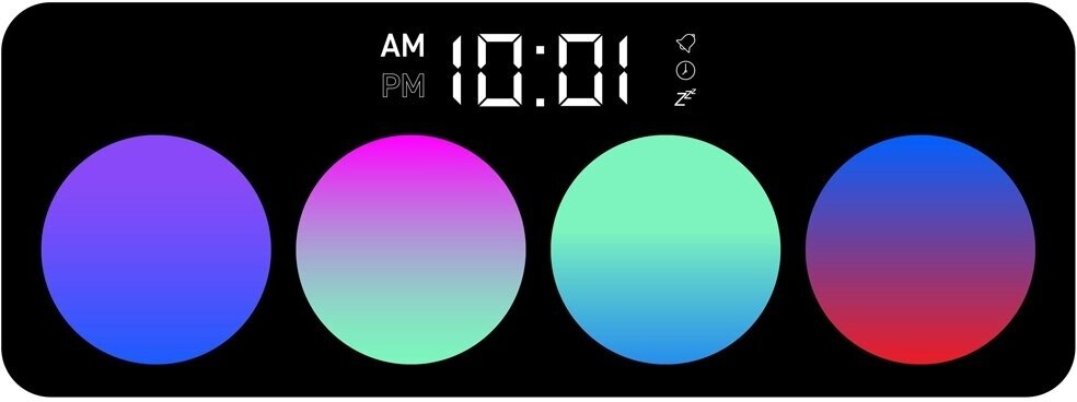 | Особенности | совместимо с устройствами, изготовленными по стандарту Qi, функция отложенного будильника, RGBподсветка 3 режима, сенсорное управление |