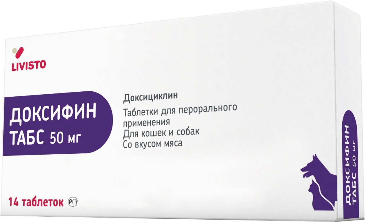 Таблетки для кошек и собак LIVISTO Доксифин, 14 таб/уп, 50мг