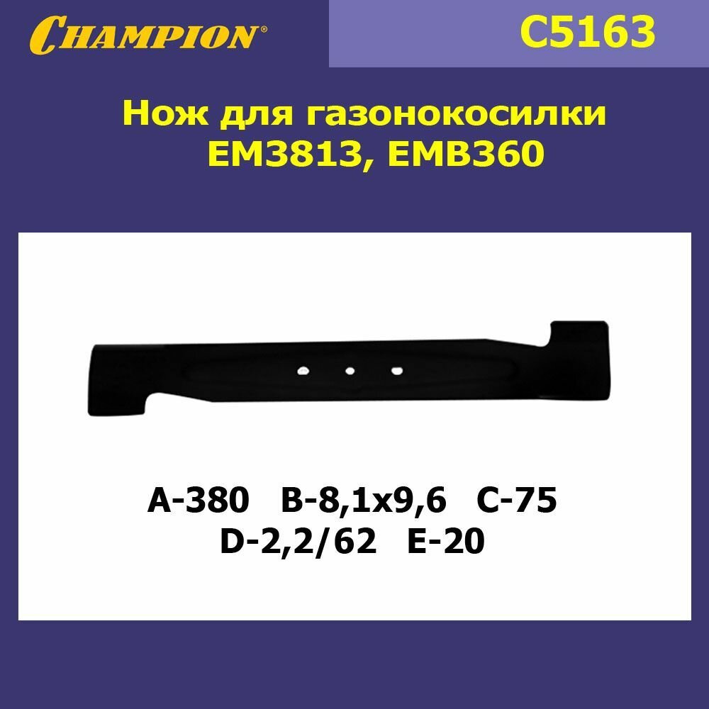 Сменный нож для газонокосилки CHAMPION EM3813 380мм [c5163]