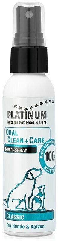 Platinum Oral Clean & Care Classic - спрей для бережного ухода за полостью рта собак и кошек. Предотвращает появление зубного налета, борется с воспалением дёсен и устраняет неприятный запах изо рта. Альтернатива удалению зубного камня под наркозом у ветеринара! Натуральные компоненты не вредят эмали зубов. Подходят для профилактики и удаления незначительного налета.