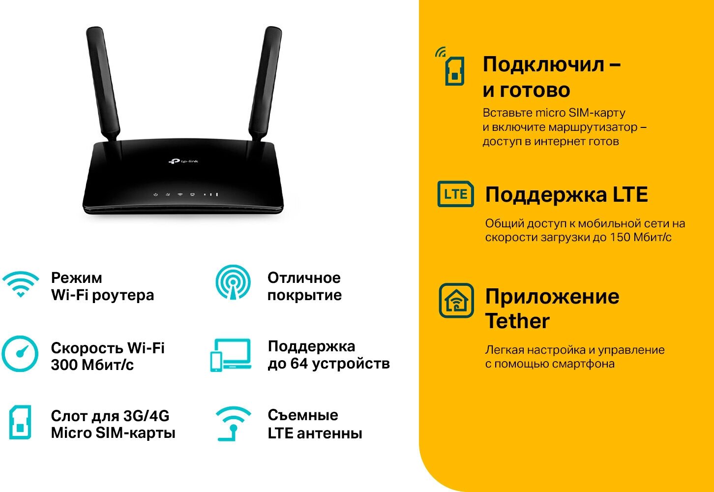 Если в вашем распоряжении есть дача или загородный дом, то роутер TP-LINK наверняка будет вам полезен. Устройство «умеет» организовывать доступ в Интернет с использованием ресурсов сотовой сети. Установив SIM-карту с подключенной услугой мобильного интернет-соединения, вы сможете подключить ко всемирной сети все самые необходимые для вас устройства. Подключением может быть как по Wi-Fi (в этом случае скорость соединения может достигать 300 Мбит/с), так и по Ethernet. Роутер обладает четырьмя портами LAN (один из которых совмещен с портом WAN). Максимально возможная скорость получения информации из сотовой сети – 150 Мбит/с. Реальная скорость доступа в Интернет будет зависеть от возможностей оператора мобильной связи и от уровня GSM-сигнала. Роутер TP-LINK собран в эффектном корпусе черного цвета. В комплекте есть все необходимое, а именно – патч-корд, адаптер питания и документация. Дополнительным преимуществом маршрутизатора является возможность настенной установки.