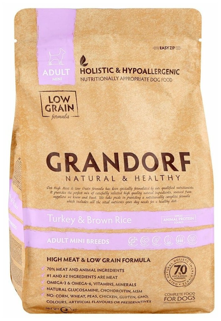 Корм для собак GRANDORF для мелких пород индейка с рисом сух. 3кг