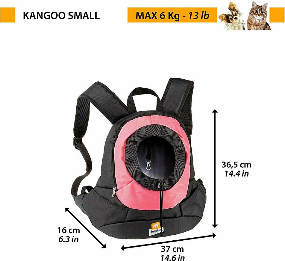 Рюкзак для маленьких собак Изготовлен из прочного нейлона Карабин для ошейника или шлейки внутри Полностью открывается Мягкий и удобный Безупречная посадка благодаря регулируемым пряжкам Легко затягивается с помощью шнурка Представлен различными размерами и цветами Максимальная вместимость – Kangoo Small: 6 кг Максимальная вместимость – Kangoo Large: 8 кгKangoo – это рюкзак-переноска для маленьких собак из прочного материала с удобным отверстием и мягкими удобными лямками. Регулируемые пряжки обеспечивают идеальную посадку, а за специальный предохранительный карабин внутри рюкзака вы можете закрепить поводок или шлейку вашего четвероногого друга. Представлен различными цветами и размерами на выбор в зависимости от веса вашего питомца. Рюкзак Kangoo станет идеальным компаньоном для пеших экскурсий или поездок на короткие расстояния с вашим верным другом. Рюкзак можно использовать разными способами: на плечах, спине или груди, чтобы постоянно следить за питомцем. Переноска Kangoo оснащена удобной системой затягивания, регулируемой шнуром.