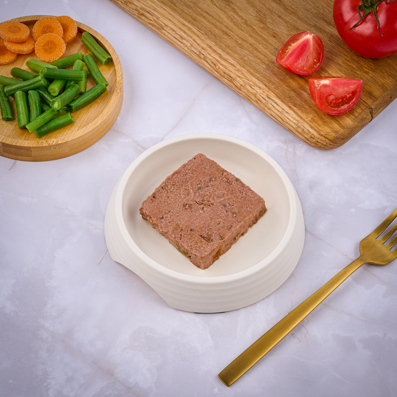 Нежный корм с муссовой текстурой, с кусочками рыбы. У нас кот не очень любит паштеты (после болезни кормили его паштетами через шприц, остался осадочек), так вот этот корм он слупил и даже не заметил. Я когда покупала, не посмотрела, увидела, что там паштет, когда уже в миску положила, думала уже, что не станет кушать. А он с удовольствием съел. Так что даже если ваш котик привереда, то ему все равно зайдёт)) состав хороший)