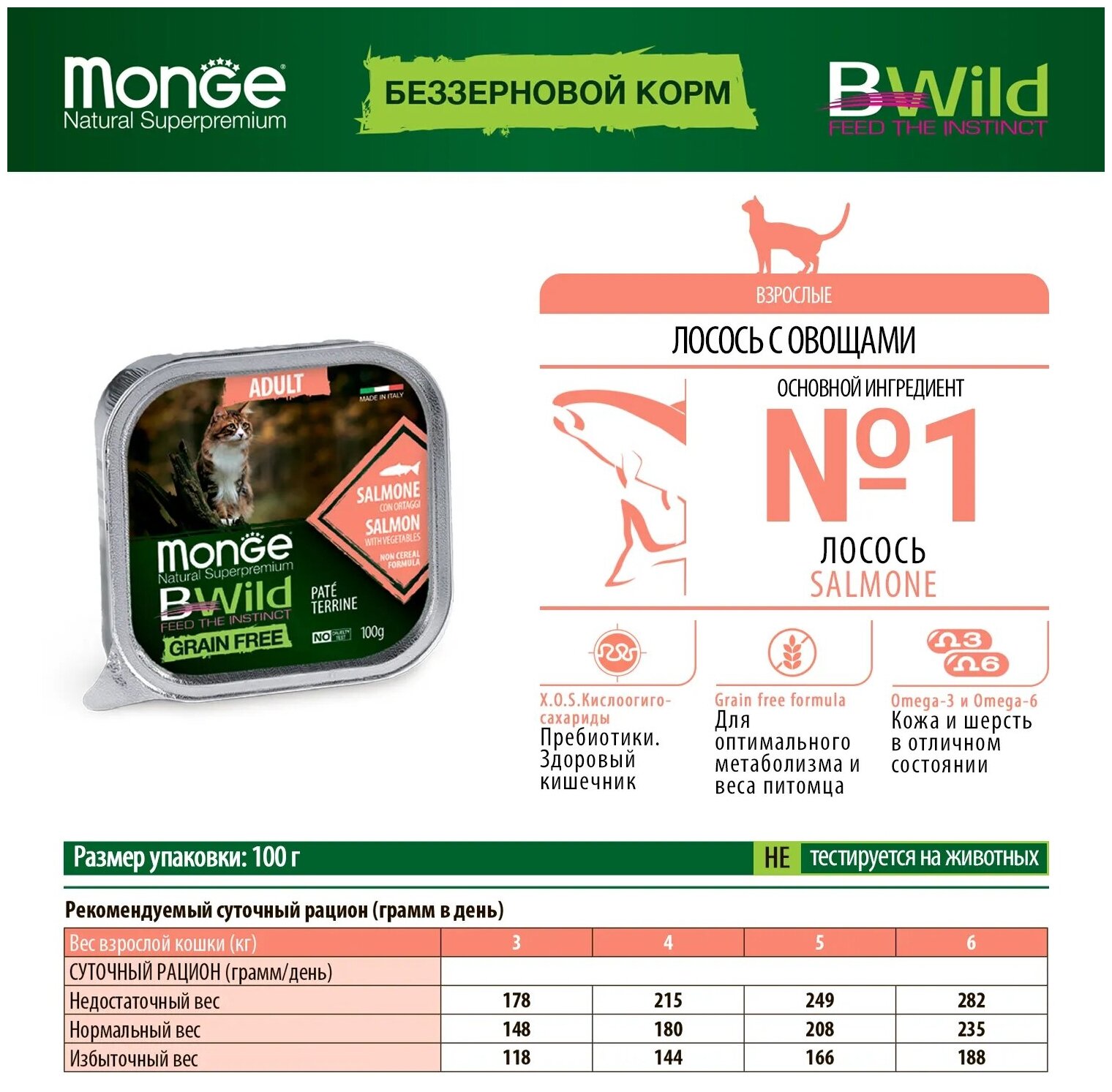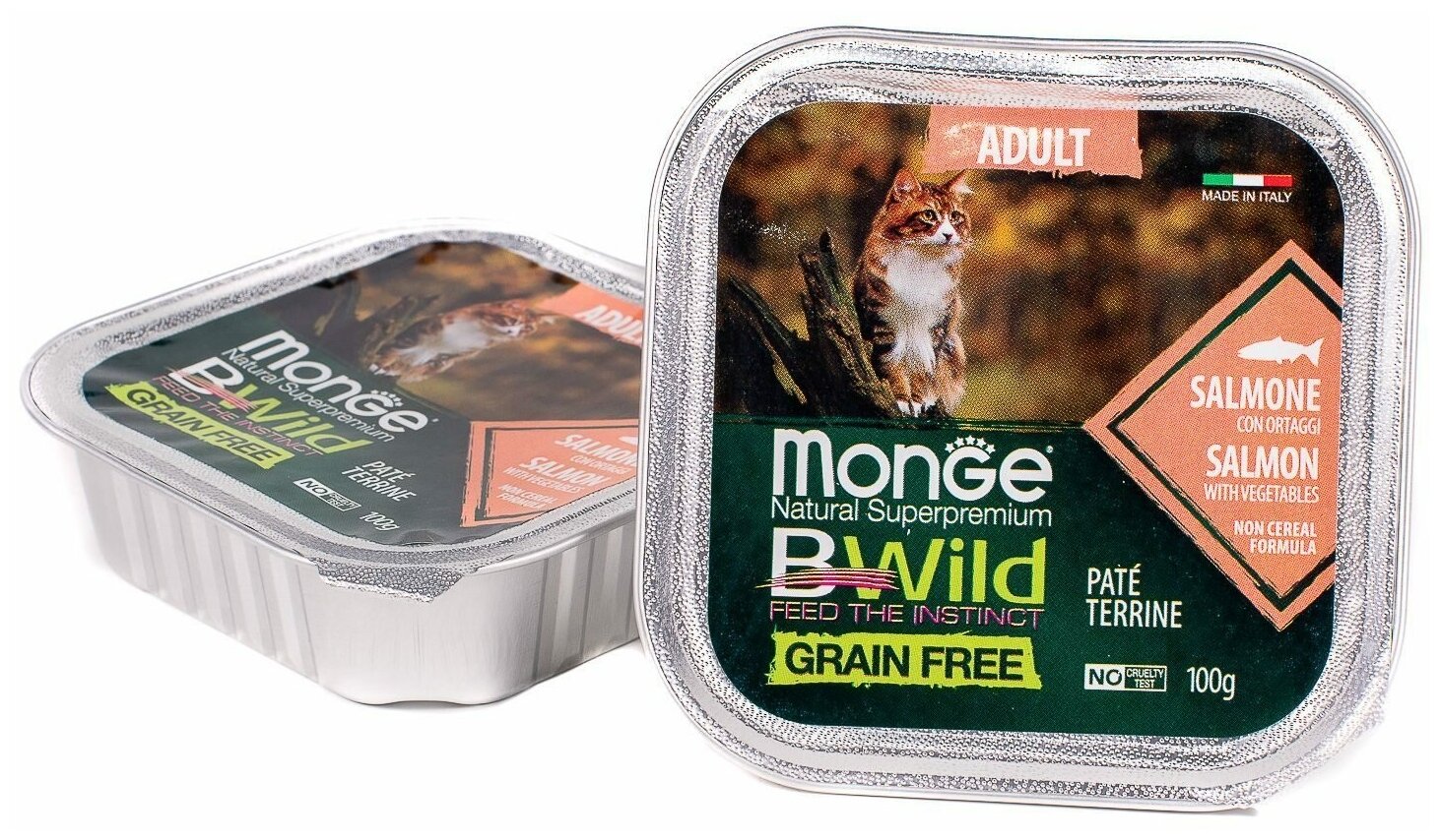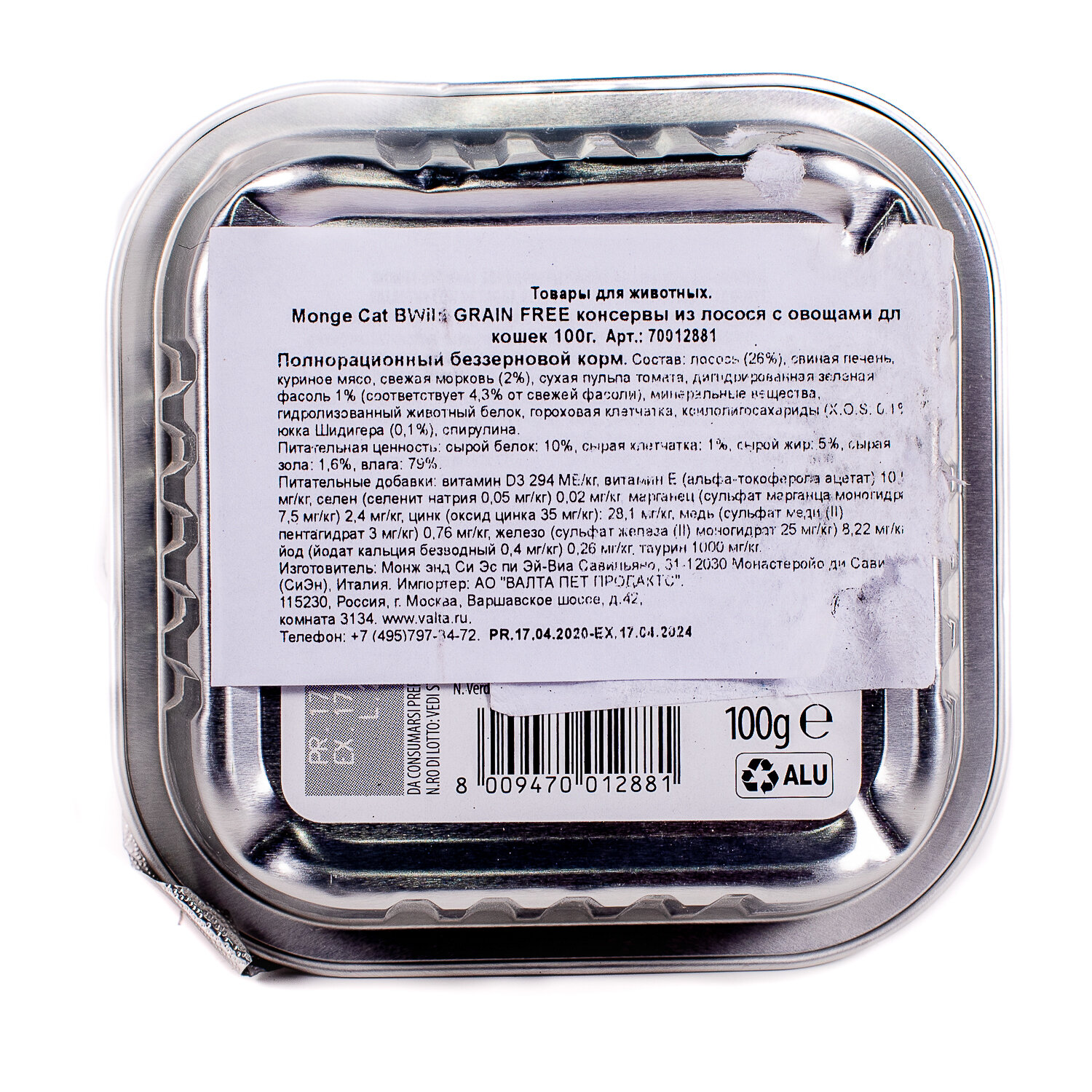 Влажный корм для кошек Monge Bwild Grain free из лосося с овощами 01 кг