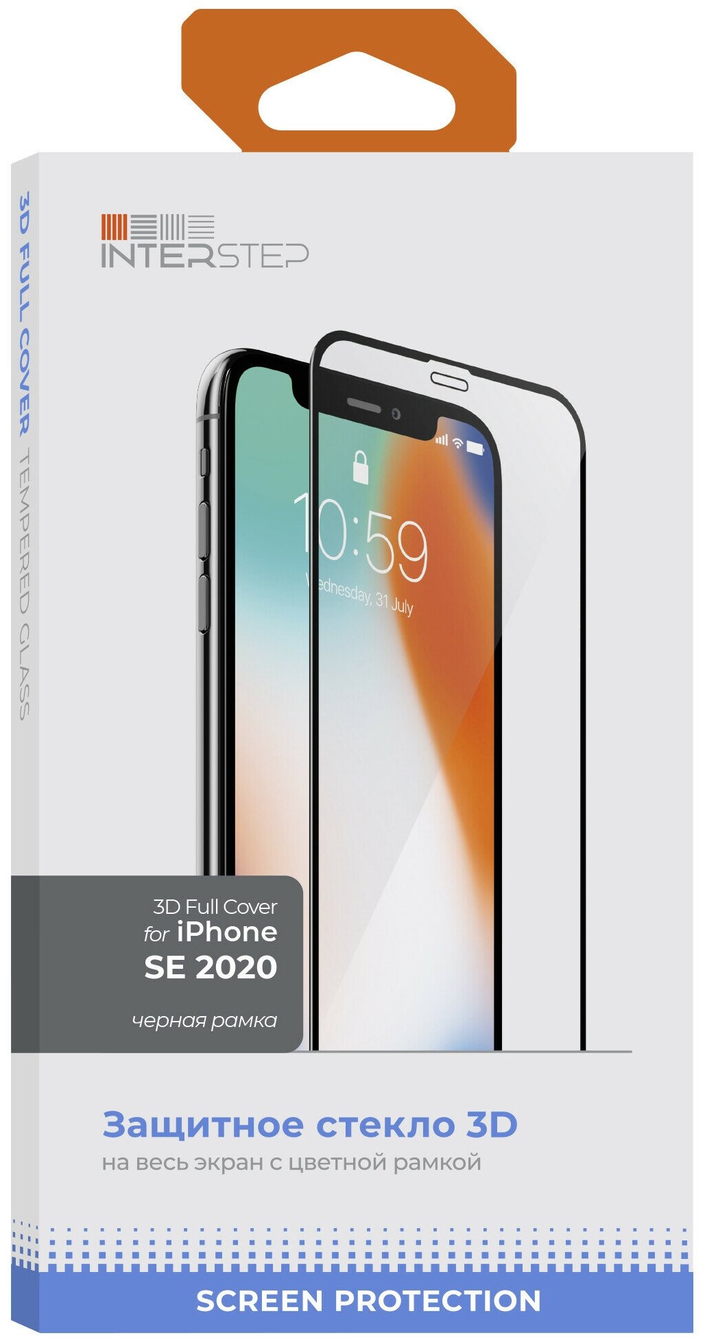 Защитное стекло InterStep 3D Full Cover iPhone SE 2020, черная рамка