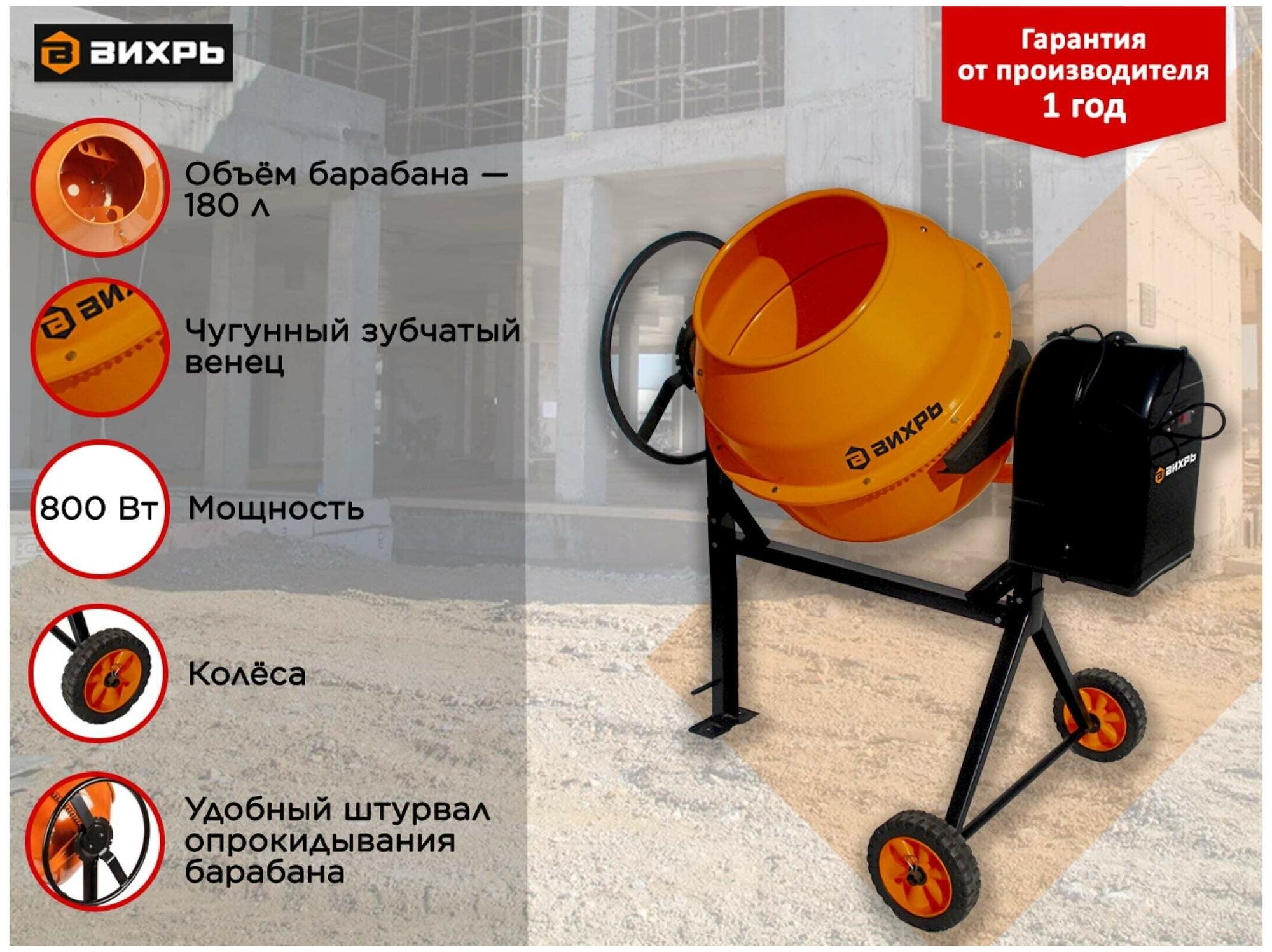 - Обзор бетономешалки Вихрь БМ 180 за 16 799 ₽