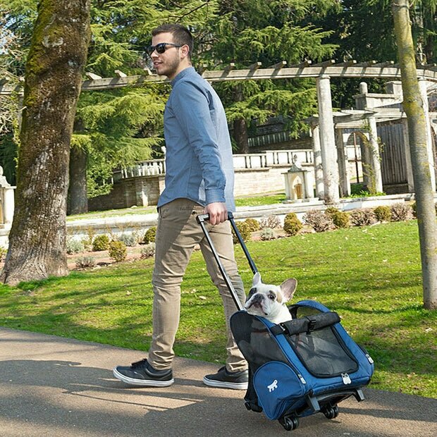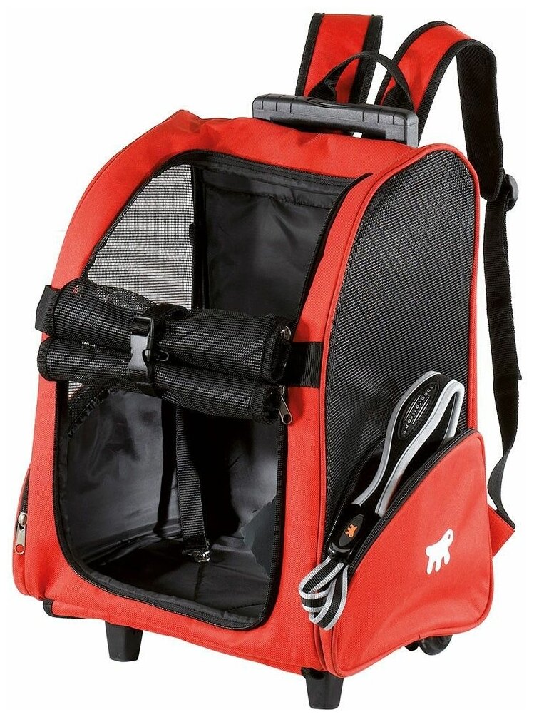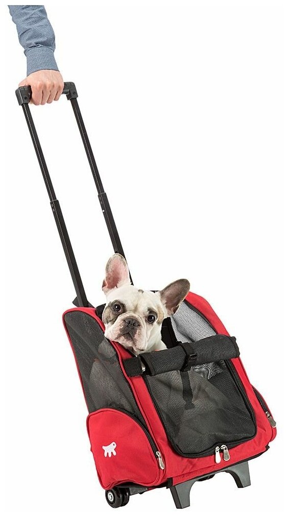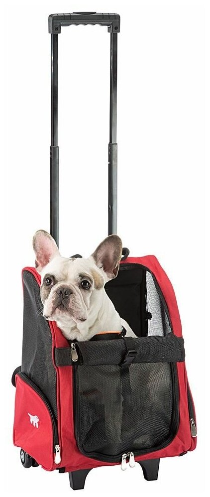 Нейлоновая сумка-тележка для мелких кошек и собак Имеет устойчивые ножки и колеса для облегчения транспортировки Регулируемая телескопическая ручка Может использоваться как рюкзак благодаря прочным ремням на задней части Идеальная вентиляция благодаря нейлоновой сетке спереди и по бокам Застежка-молния на передней сетке, сетку можно свернуть, оставив отверстие открытым Оснащена ремнями безопасности для вашего питомца Различные цвета Trolley - 32 x 28 x В 51 cм Вы путешествуете на автобусе и хотите брать своего питомца с собой в короткие поездки за город? Теперь это не проблема! Среди прочих аксессуаров, предназначенных для путешествий, Ferplast предлагает Trolley - удобную переноску на колесиках, подходит для кошек и мелких собак. Переноска сделана из прочного нейлона и имеет телескопическую ручку, регулируемую по длине, с удобной центральной кнопкой. Используйте ремни, чтобы носить переноску как рюкзак или катить за собой, как обычный багаж. Оснащена устойчивыми ножками. Переноска комфортна для животных: ее широкие сетчатые окна обеспечивают необходимую вентиляцию. Передняя часть открывается при помощи застежки-молнии для обеспечения легкого доступа внутрь. В случае необходимости сетку можно свернуть наверх и закрепить крючком из пластика. Внутри у рюкзака есть ремень безопасности, который можно прикрепить к ошейнику или шлейке вашего питомца. Переноска имеет 2 боковых кармана для хранения всех аксессуаров, необходимых в путешествии: поводка, миски или бутылки с водой.