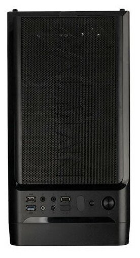 Передняя панель – металлическая сетка с дополнительной перфорацией по бокам, для активной вентиляции, через которую просматривается свечение установленных вентиляторов.