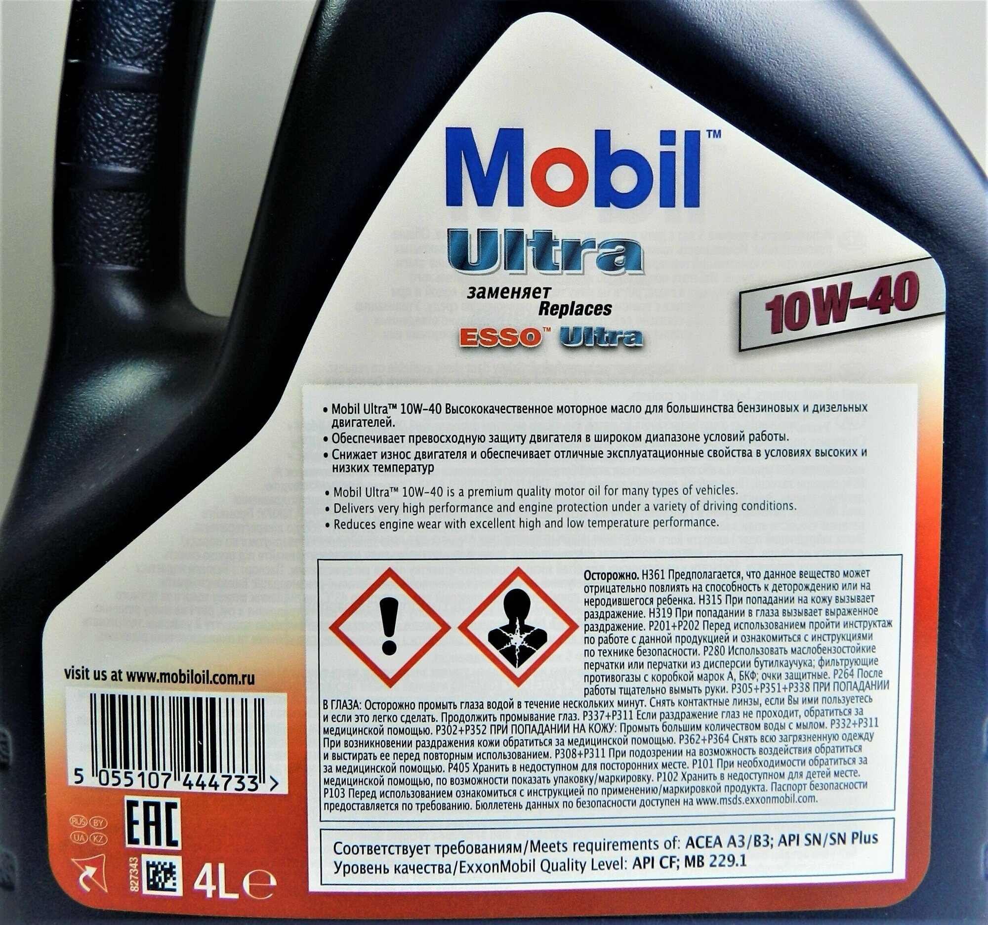 Масло моторное MOBIL Ultra 10W40 полусинтетическое 4 л