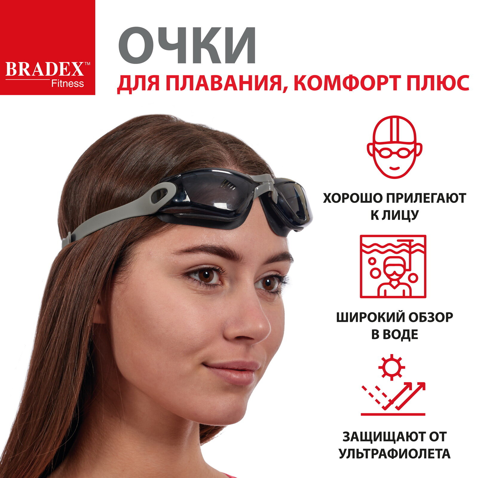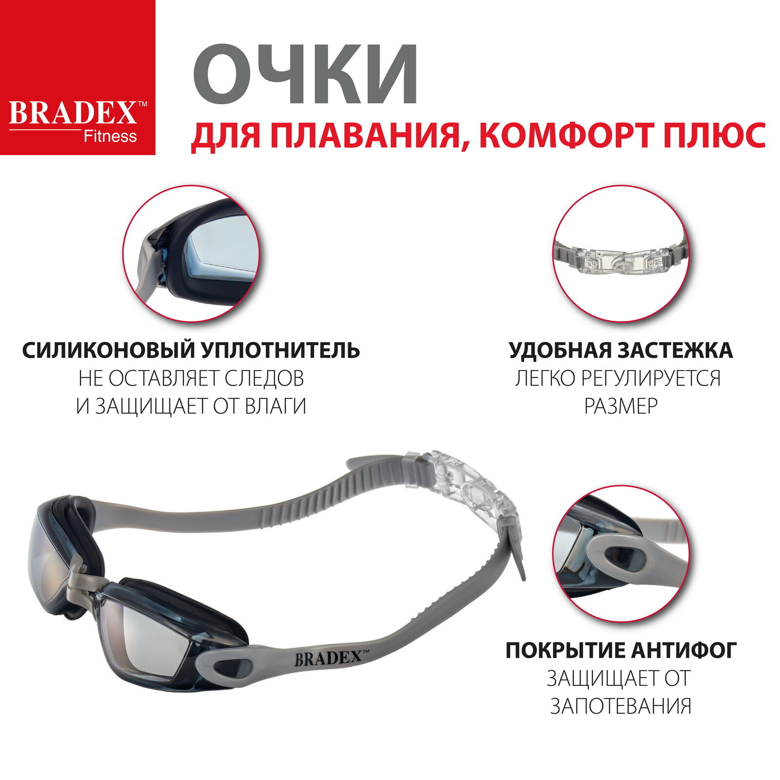 Очки для плавания Bradex Комфорт+ серый (SF 0389)
