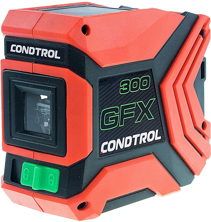 CONDTROL GFX300 проецирует горизонтальную линию и две вертикальные с углом 90 градусов. Зеленый луч отлично виден в любых условиях. Режим работы с приемником позволяет увеличить диапазон измерения с 20 до 40 метров. Корпус имеет четыре варианта крепления.