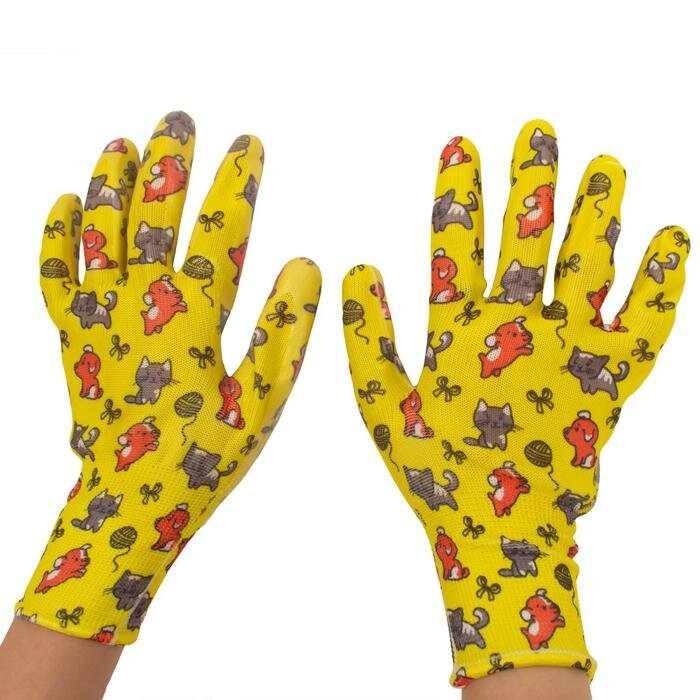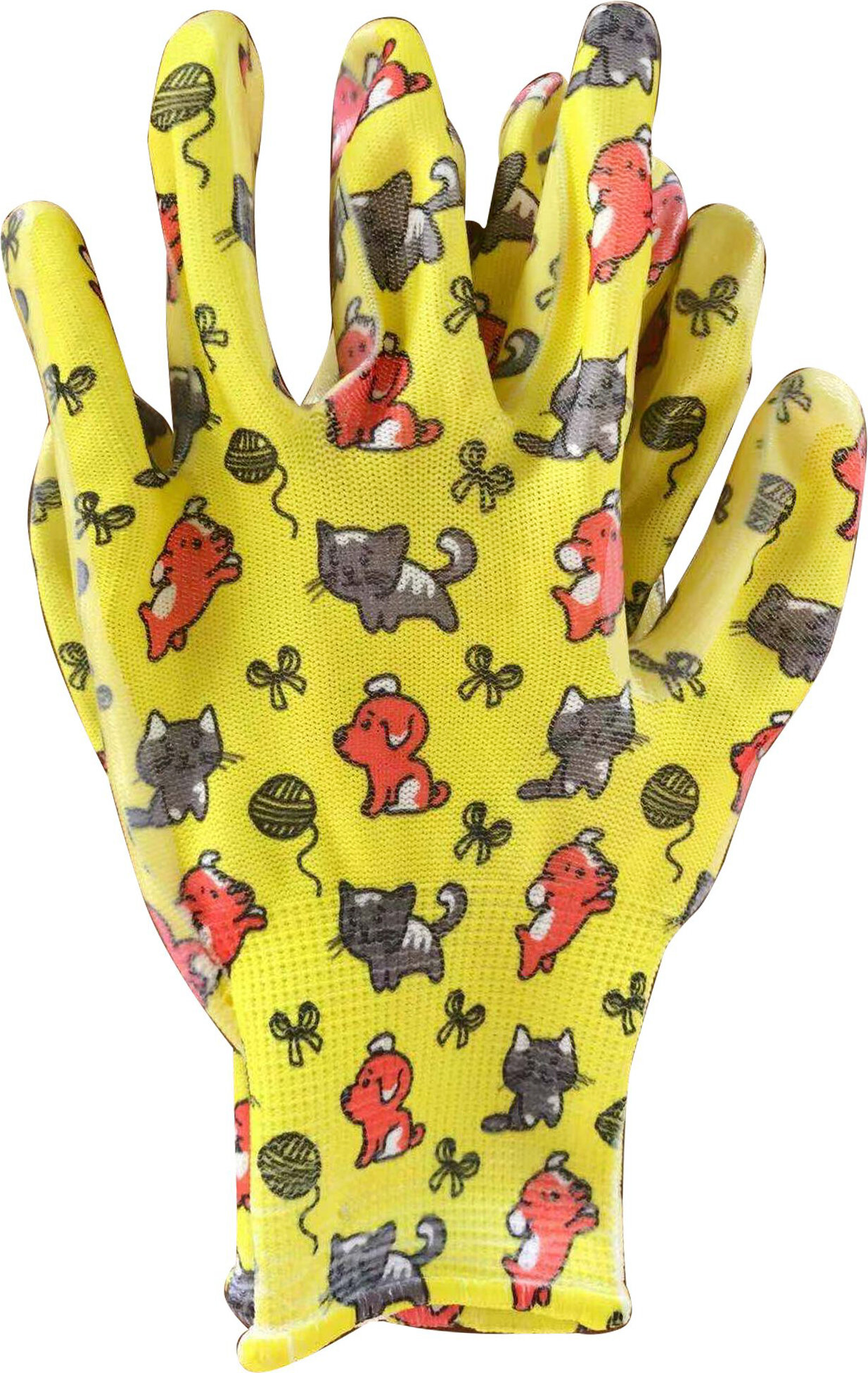 Перчатки ТМ Garden Show модель Пушистики выполнены из полиэстера. Нитриловое покрытие предотвращает скольжение предметов в руке и обеспечивает защиту рук от влаги, грязи и царапин при выполнении различных видов работ в саду и по дому. Современные материалы позволяют коже дышать . Перчатки легкие, удобные, износостойкие. Размер: 9.