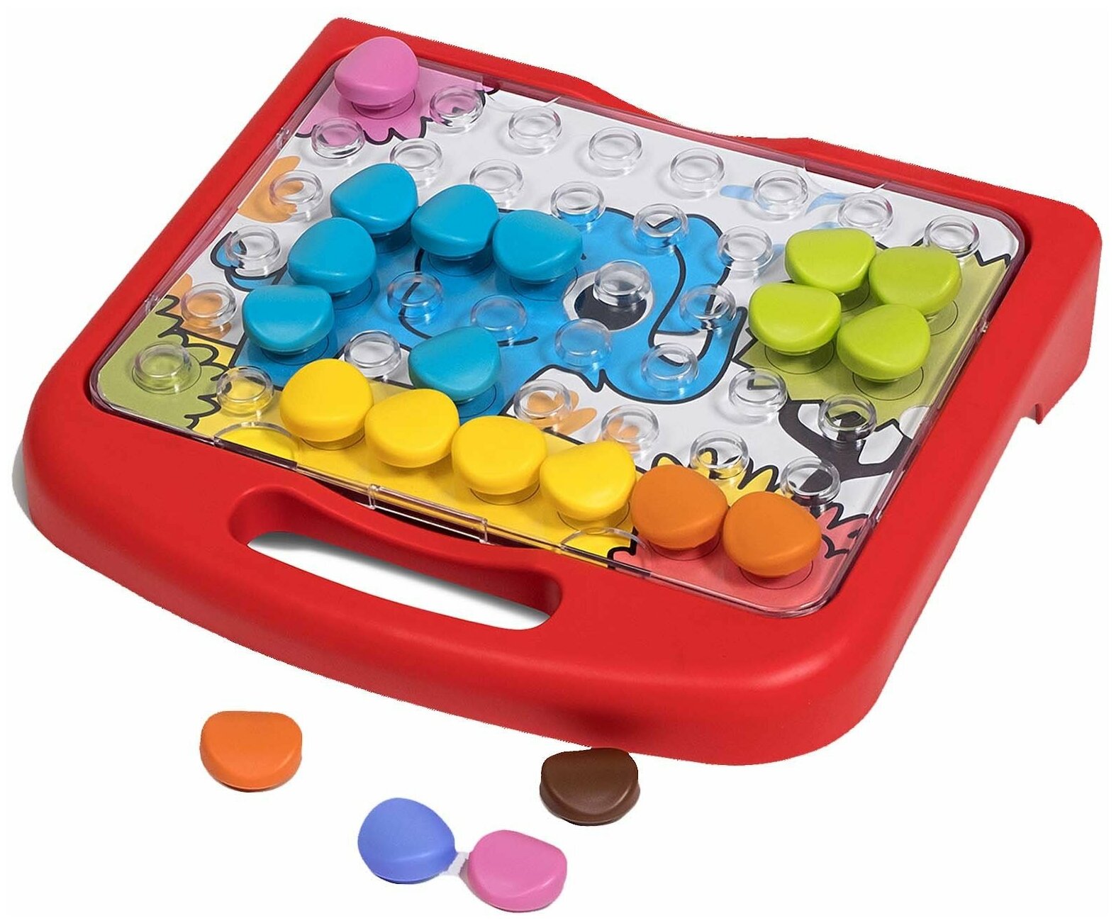 Эта красочная мозаика создана специально для малышей. Достаточно подложить картинку-шаблон под поле мозаики - и ребенок легко соберет то, что на ней изображено. Фишки имеют различные цвета, так что рисунки будут получаться красочными и необычными, а на белом фоне они приобретают уникальный стиль.