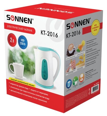 Благодаря своему дизайну и необычному узору на корпусе, электрический чайник Sonnen KT-2016 отлично подойдет для дома и офиса.