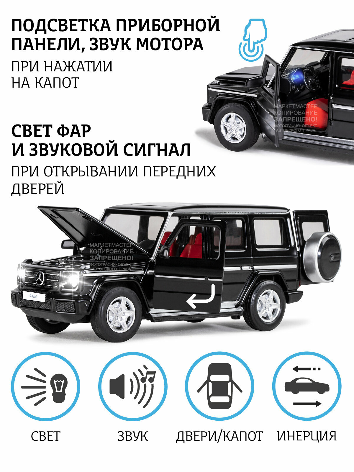 | Особенности | открывается багажник; открывается капот; открываются двери; световые эффекты; звуковые эффекты; коллекционная модель |