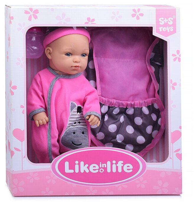 Пупс арт. 200252419 S+S Toys Пупс электронный с переноской и бутылочкой 200252419