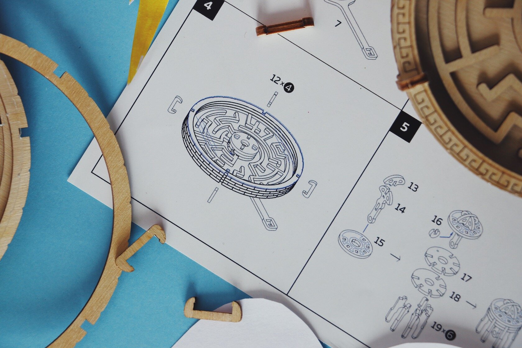Игрок должен, не касаясь самого лабиринта, провести шарик от начала и до конца. В головоломке мы воплотили известную легенду о лабиринте Минотавра и даже украсили её традиционными греческими узорами.