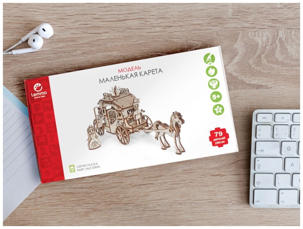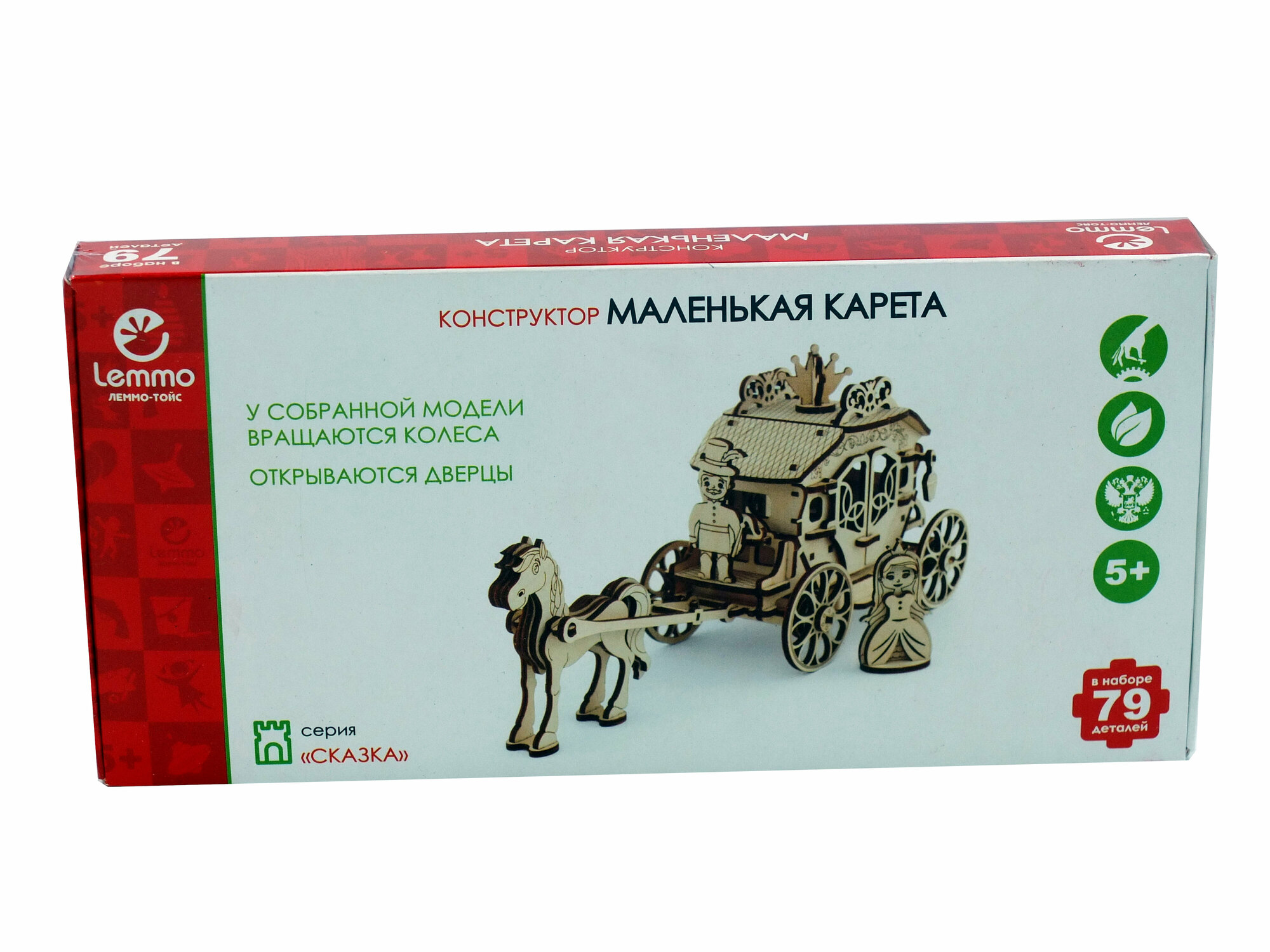 Конструктор 3D деревянный подвижный Карета Lemmo Карета (79 деталей)