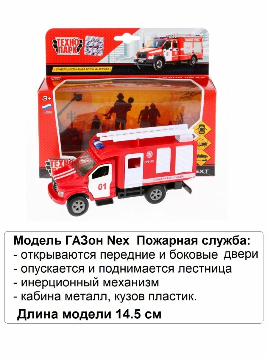 Технопарк Машина металлическая ГАЗ Газон NEXT пожарная машина