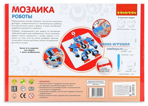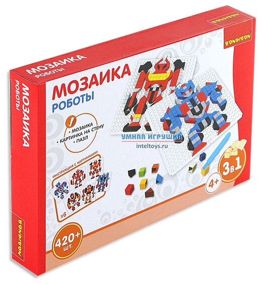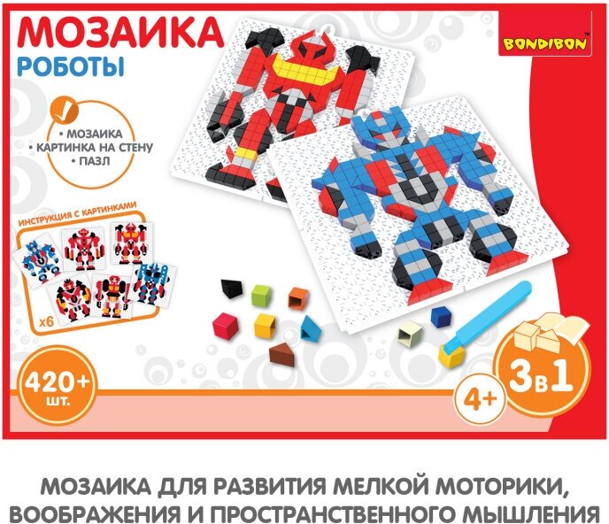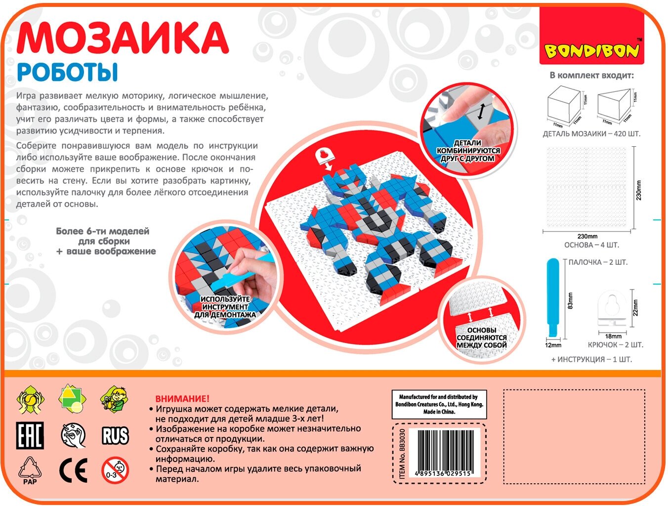 Мозаика Colorplast Bondibon Роботы 420 деталей Мозаика Роботы 3 в 1 (420 деталей)