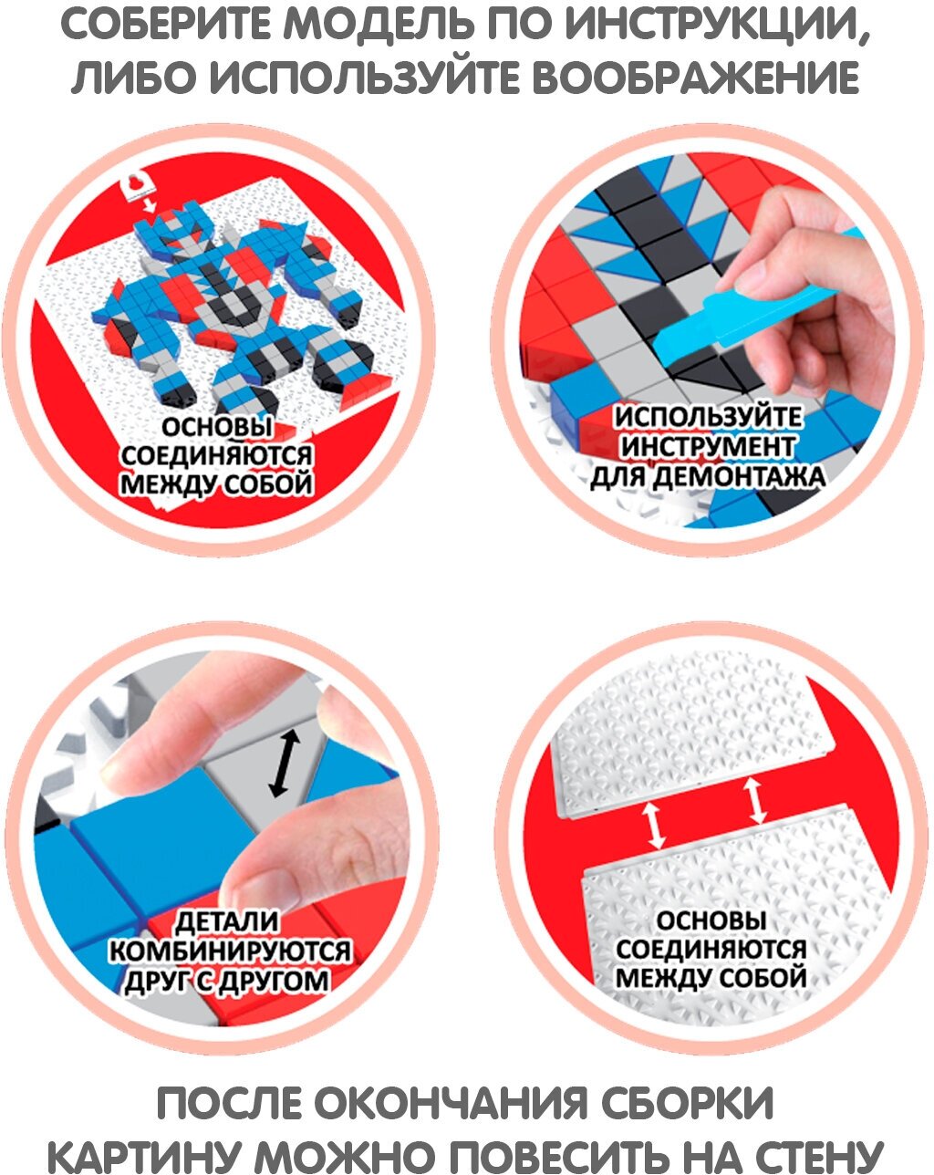 Соберите понравившуюся вам модель по инструкции либо используйте ваше воображение. После окончания сборки можете прикрепить к основе крючок и повесить на стену. Если вы хотите разобрать картинку, используйте палочку для более легкого отсоединения деталей от основы.