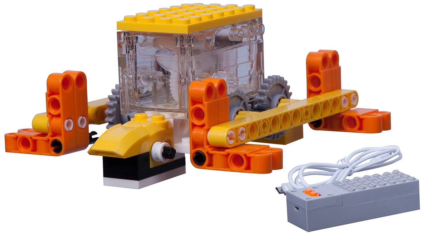 Оснащен электрическим мотором, фотоэлектрическим контролем и батарейным отсеком. Размер черепахи в собранном виде 2,5 х 12,7 см. Функции и характеристики применение храповика и собачки, принцип переменной скорости, шкив.