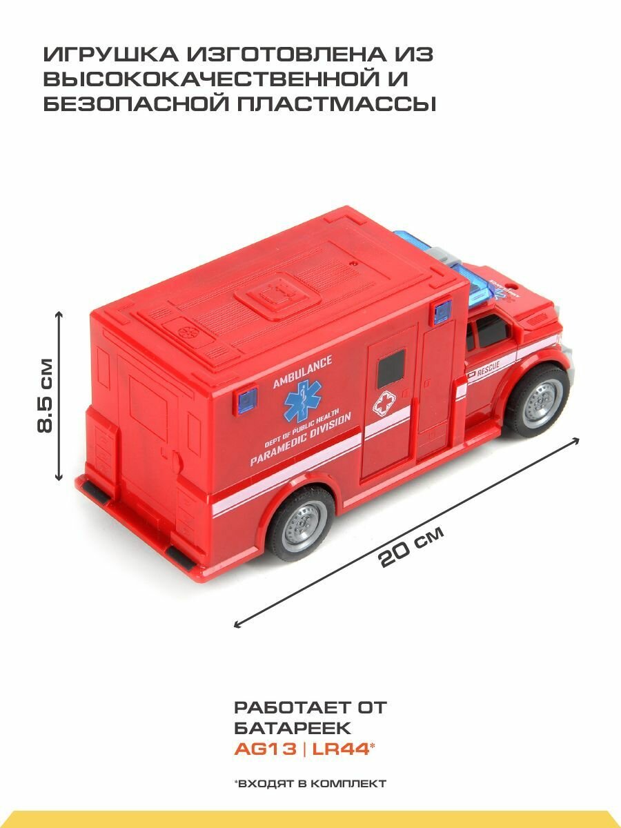 Кнопка, включающая звук, находится между мигалками. Она запускает звуки сирены скорой помощи и свет мигалки.