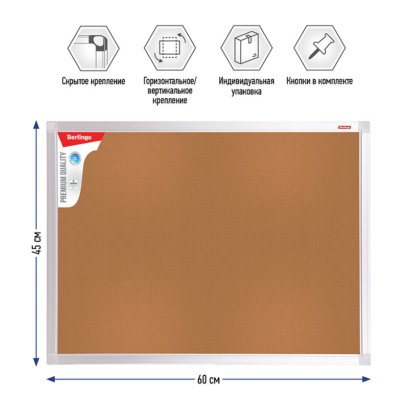 Сервис сравнения цен СкидкаГИД предлагает сравнить цены на товар «Доска пробковая Berlingo Доска пробковая Premium 45x60 см (размер: 60x45 см)»