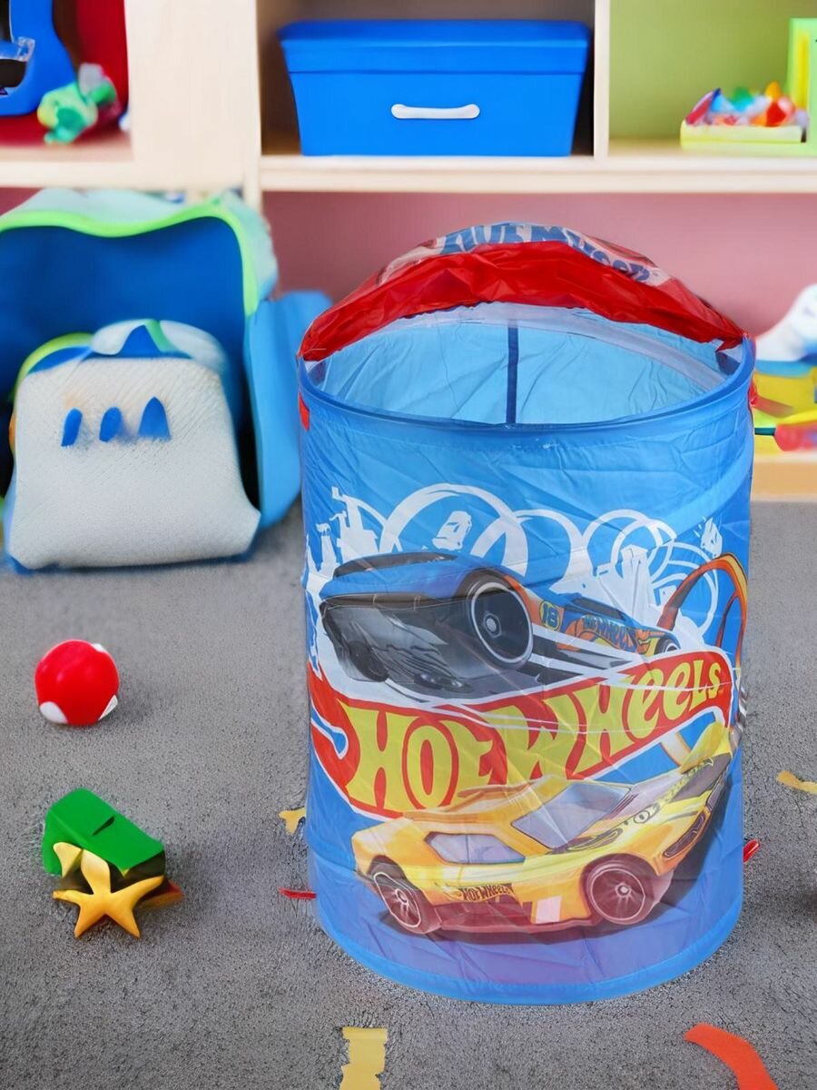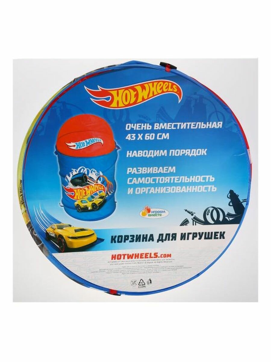 Хранить игрушки будет намного удобнее в специальной корзине для игрушек Hot wheels. Корзина легко складывается и не занимает много места. На ней рисунок с гоночными машинами Hot wheels.