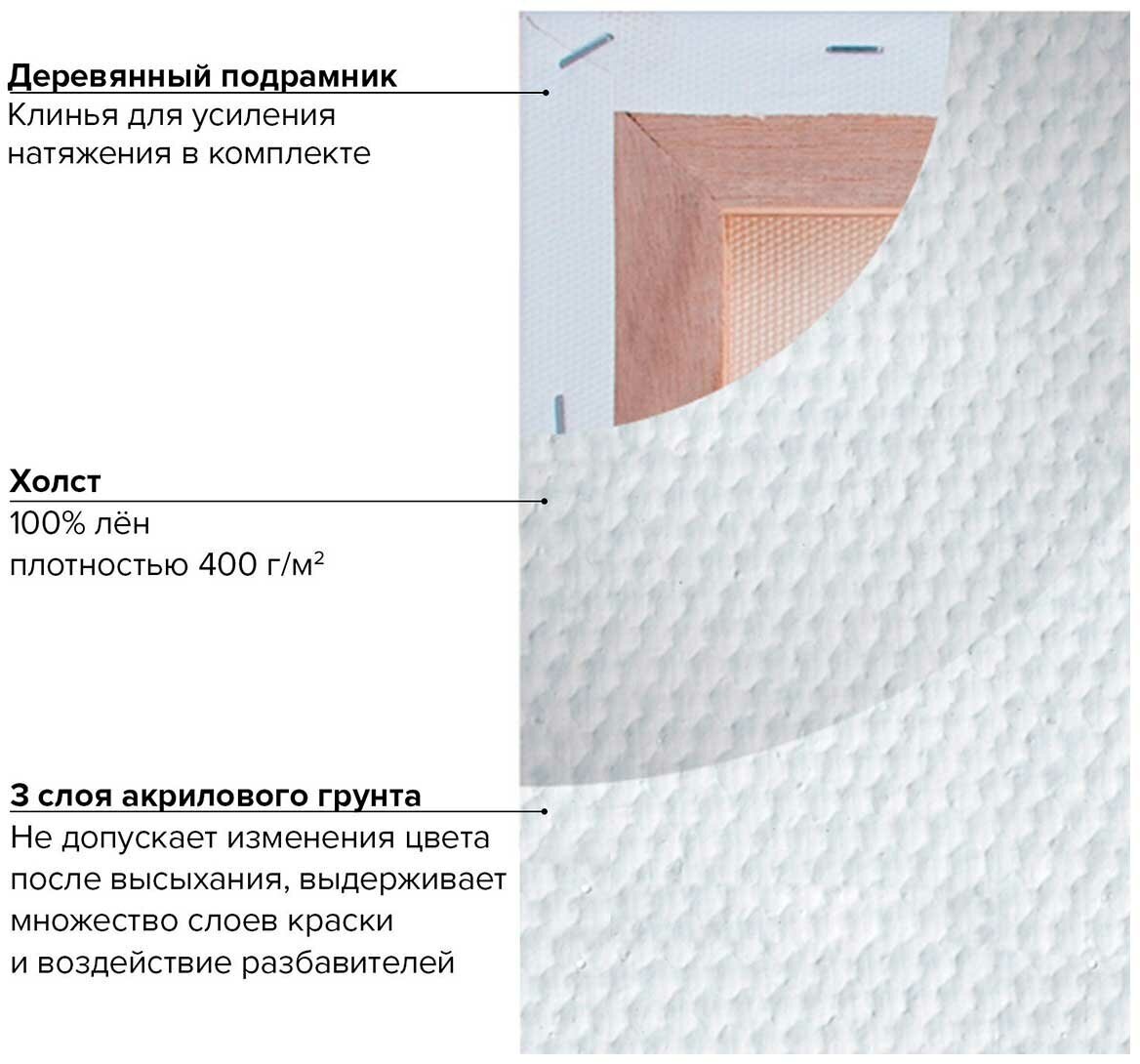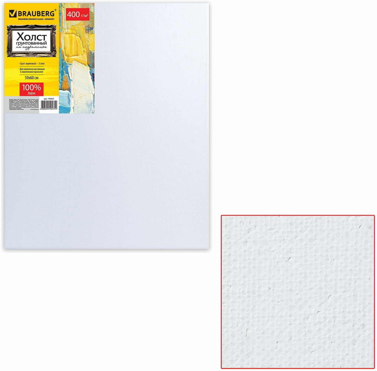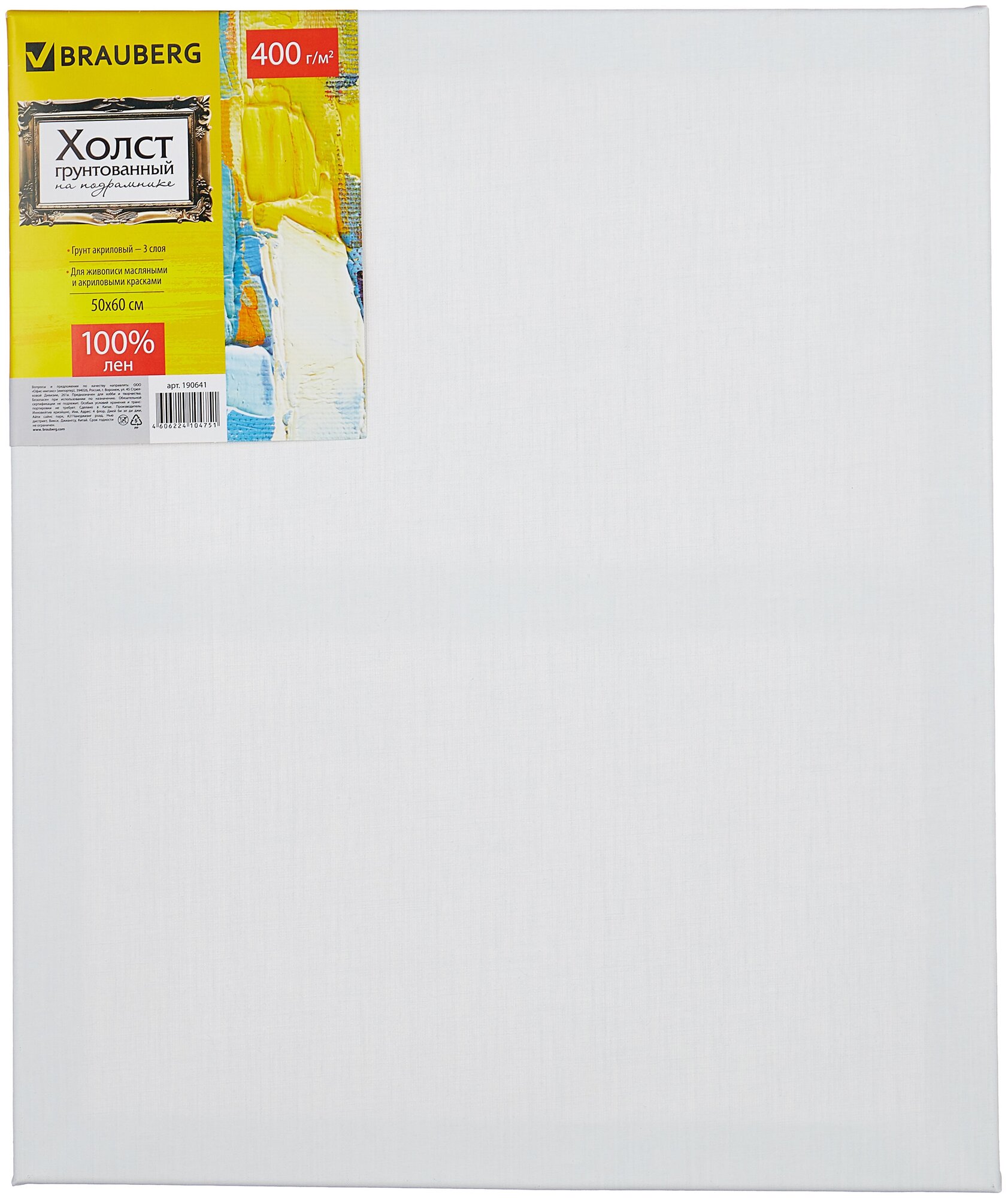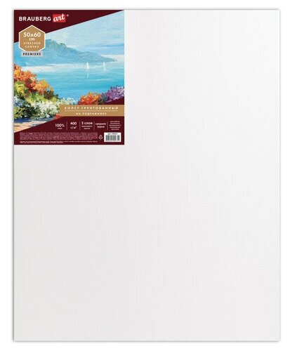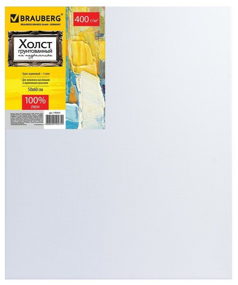 Холст на подрамнике Brauberg ART PREMIERE 60х80см грунтованный 100% лен среднее зерно (190642) Холст грунтованный на подрамнике лен среднее зерно 60х80 см