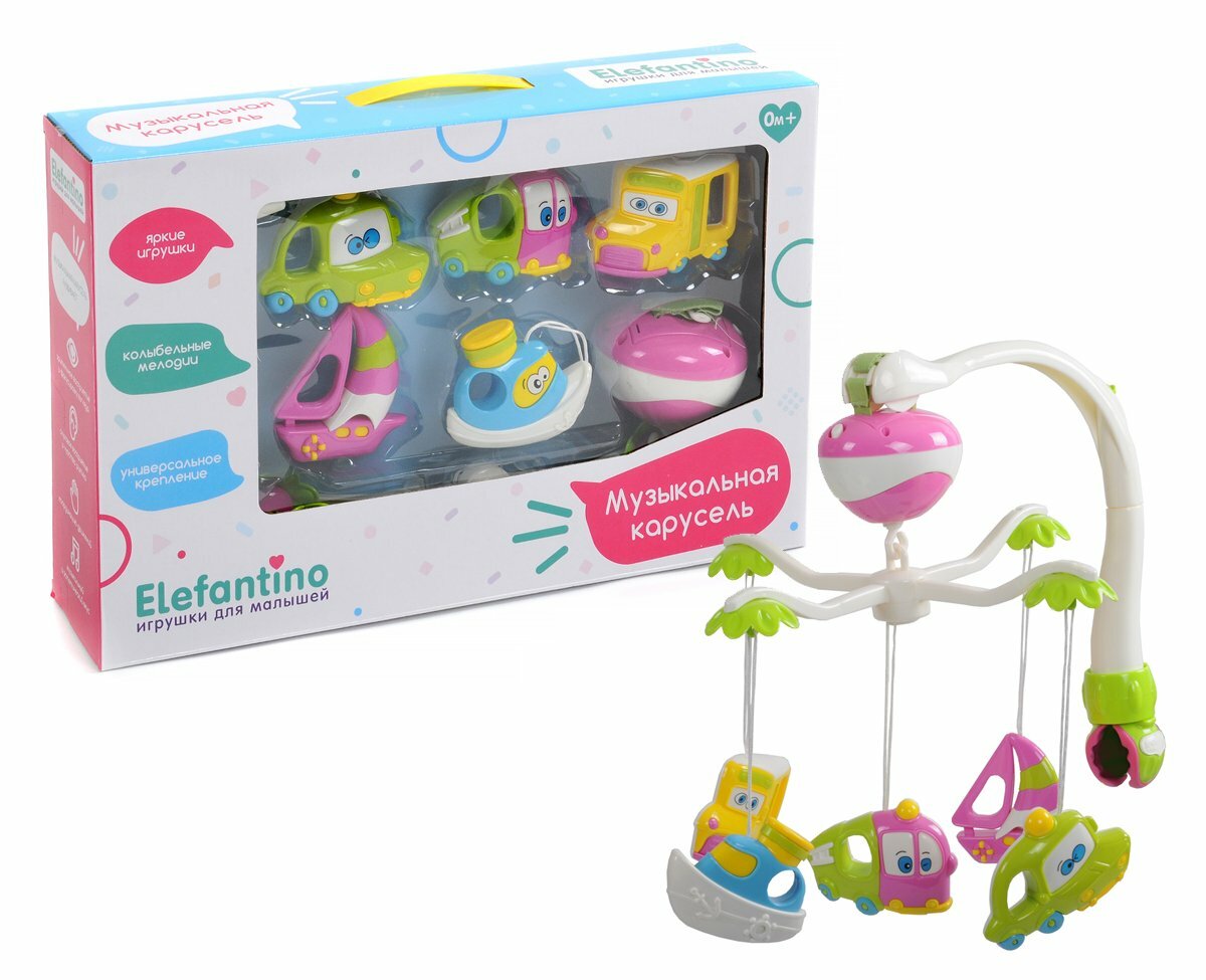 Мобиль Elefantino Музыкальная карусель Транспорт