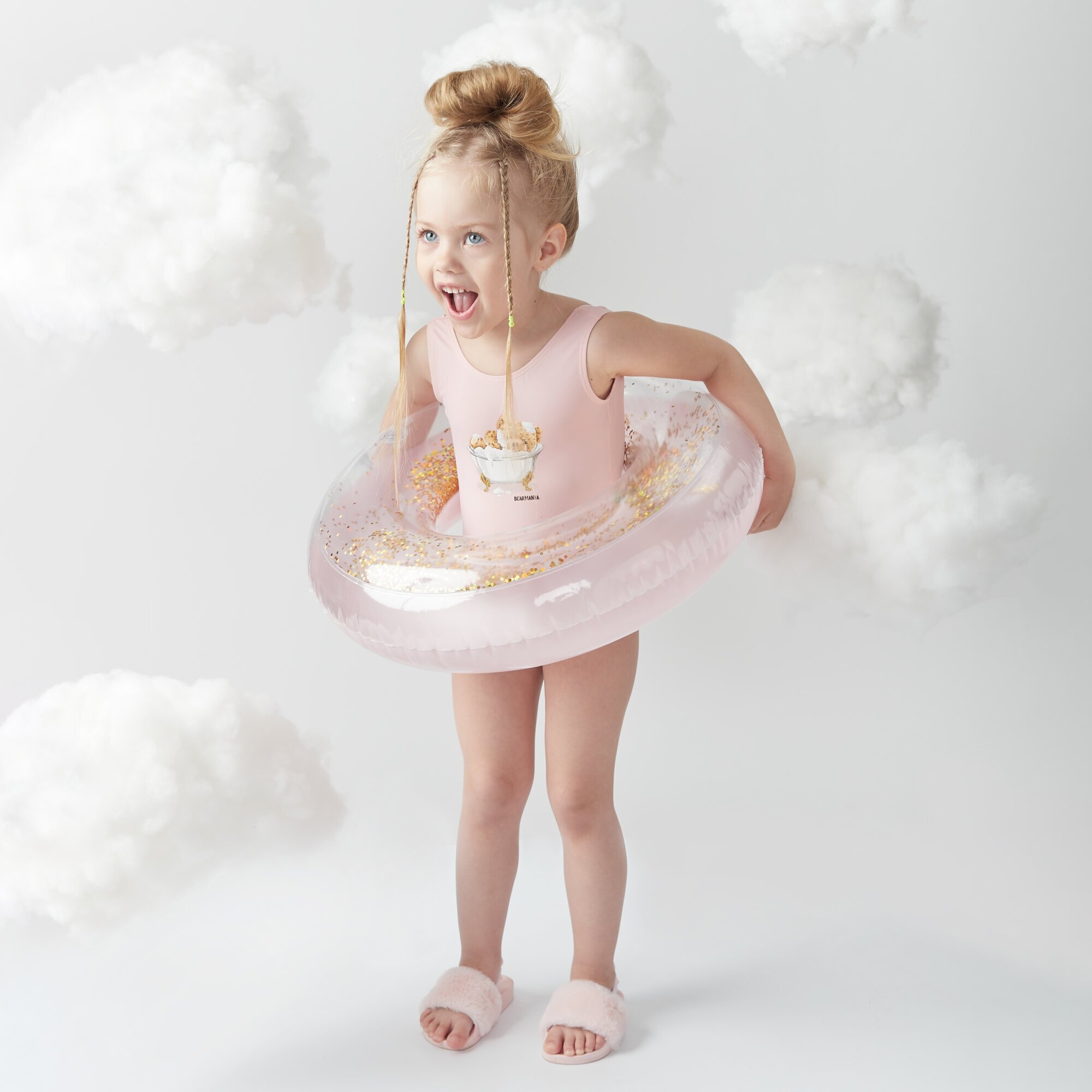Дети любят играть с кругом для плавания, а необычная расцветка — нежная с золотыми блёстками — превращает круг в настоящую мечту и сделает игры ещё веселее.