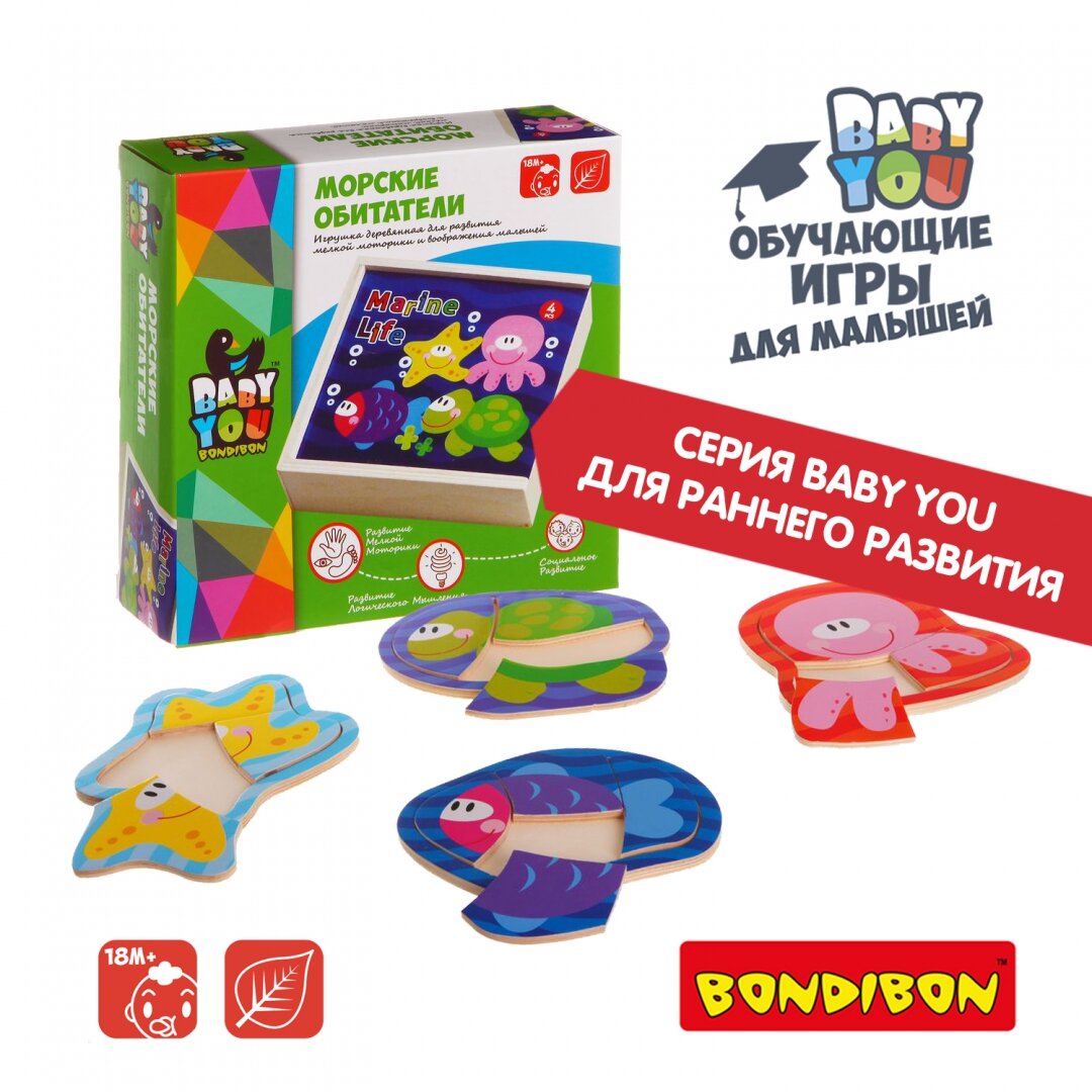 Деревянная игрушка Bondibon Игровой набор пазлы Морские обитатели