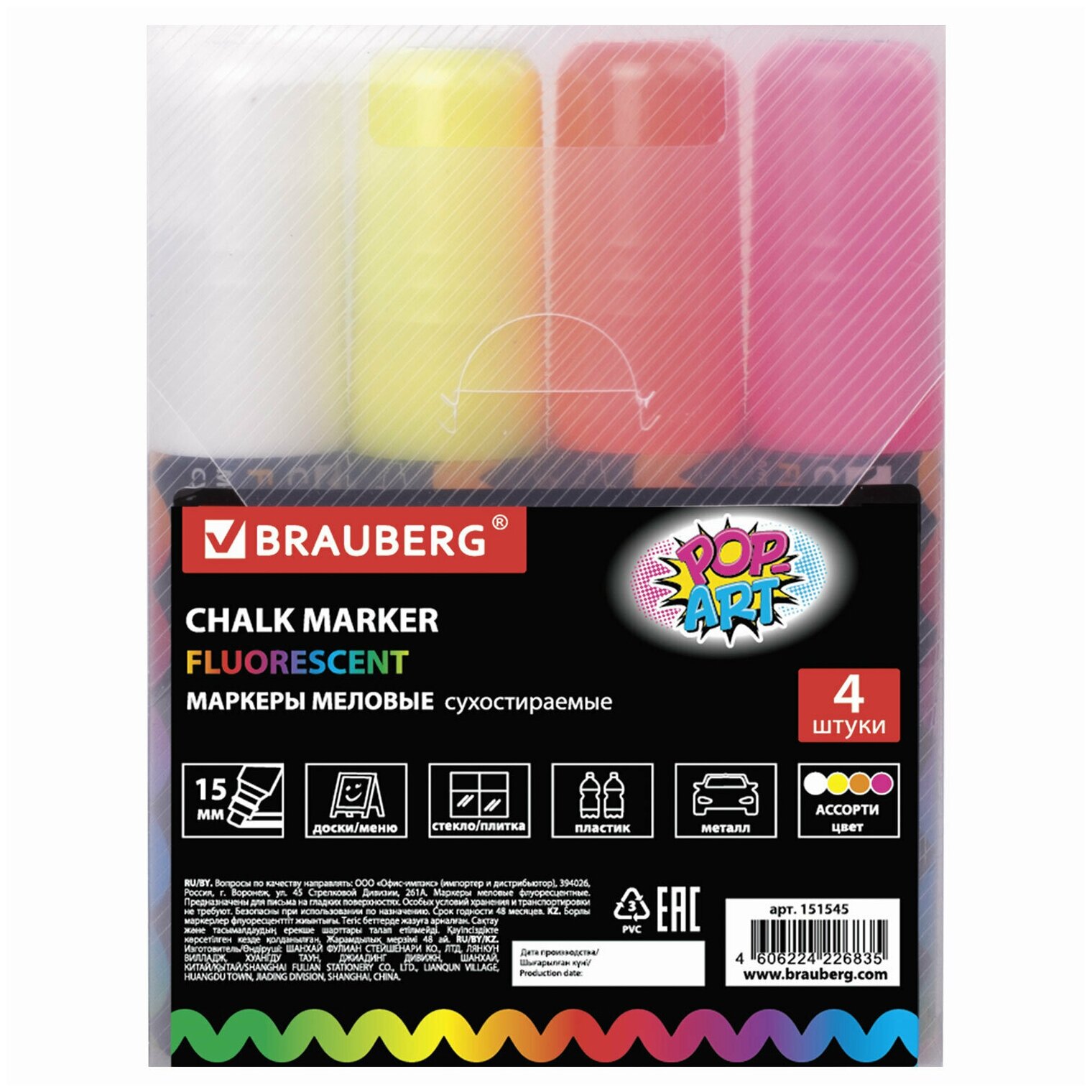 Маркеры Brauberg Pop-Art Маркеры меловые 15 мм 4 шт.