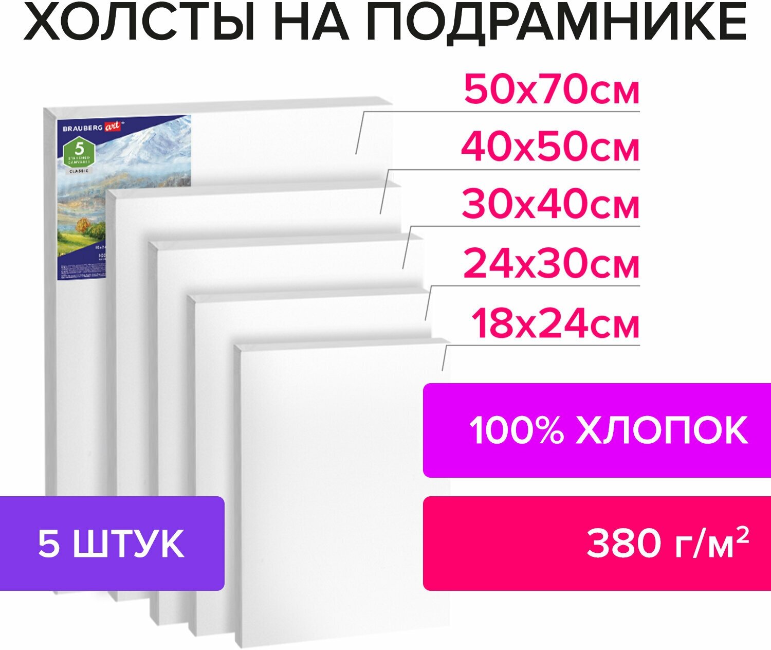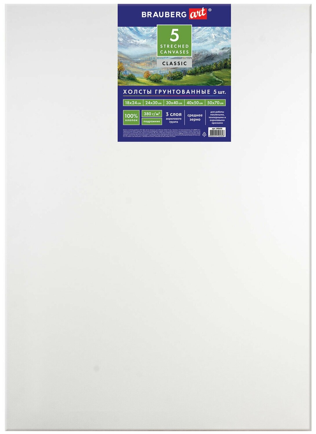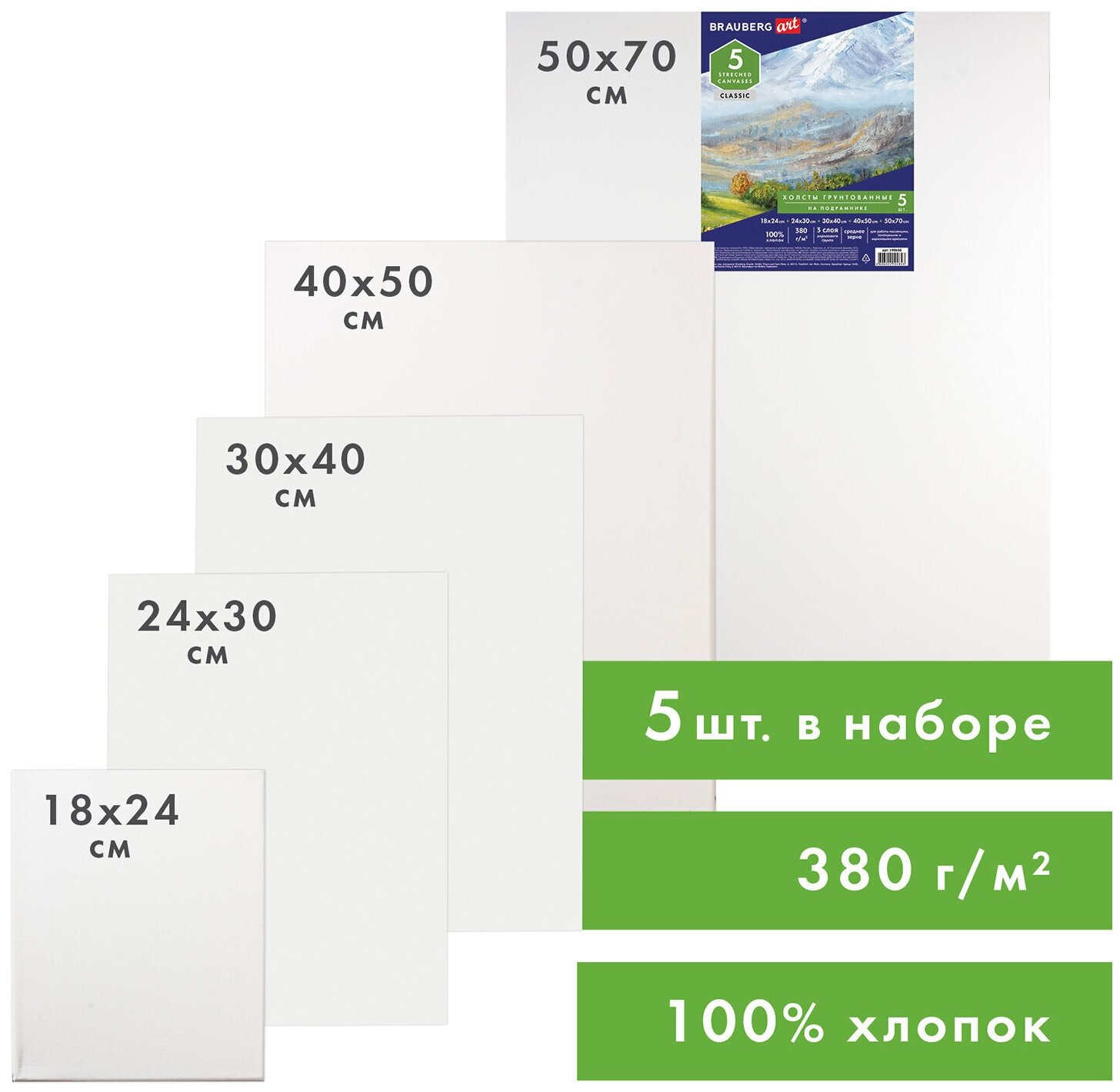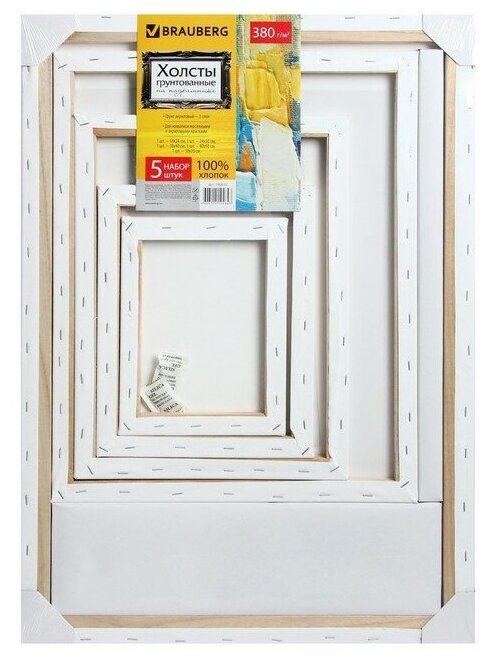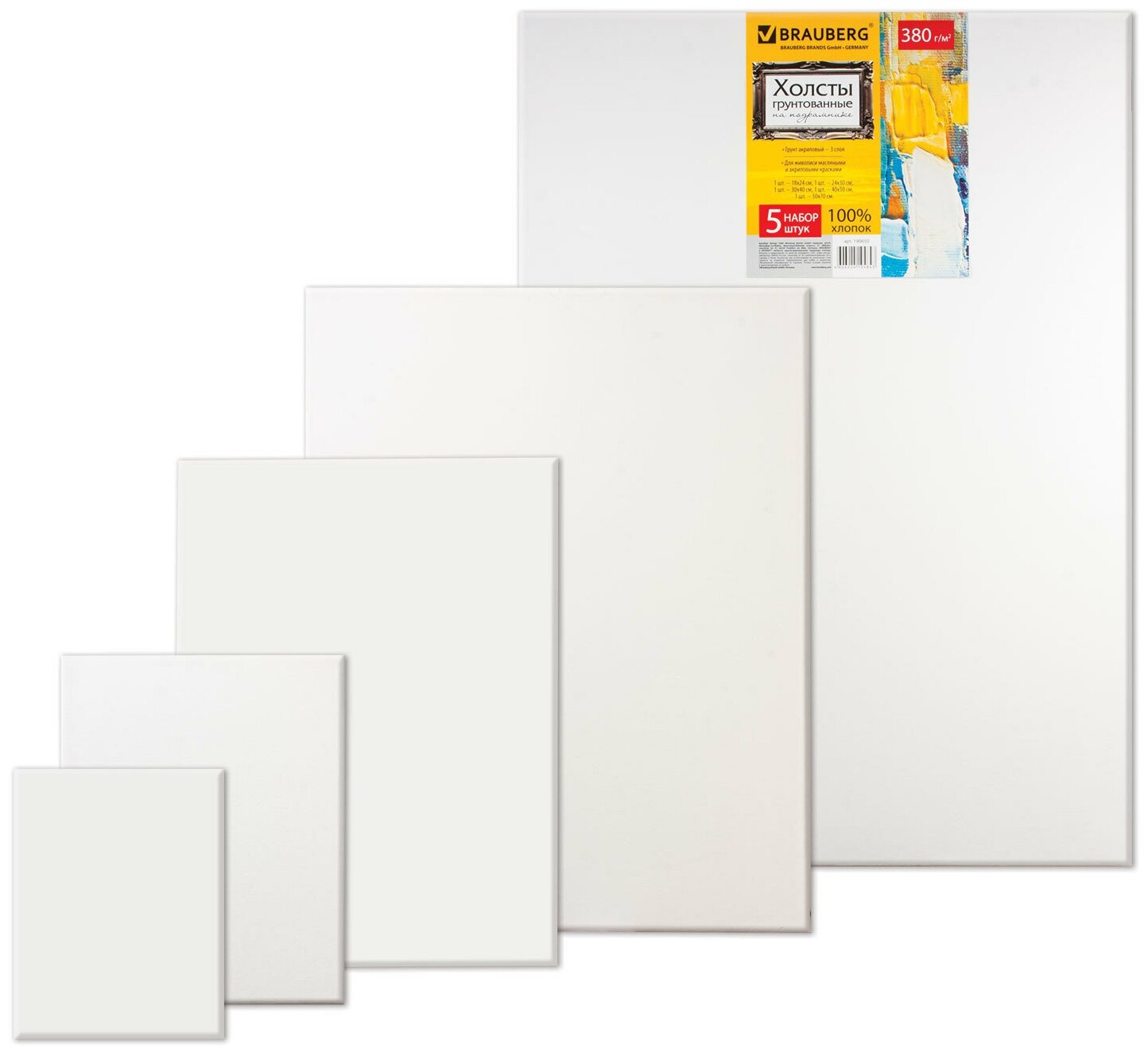 Холст Brauberg Холсты грунтованные на подрамнике хлопок среднее зерно набор 5 шт