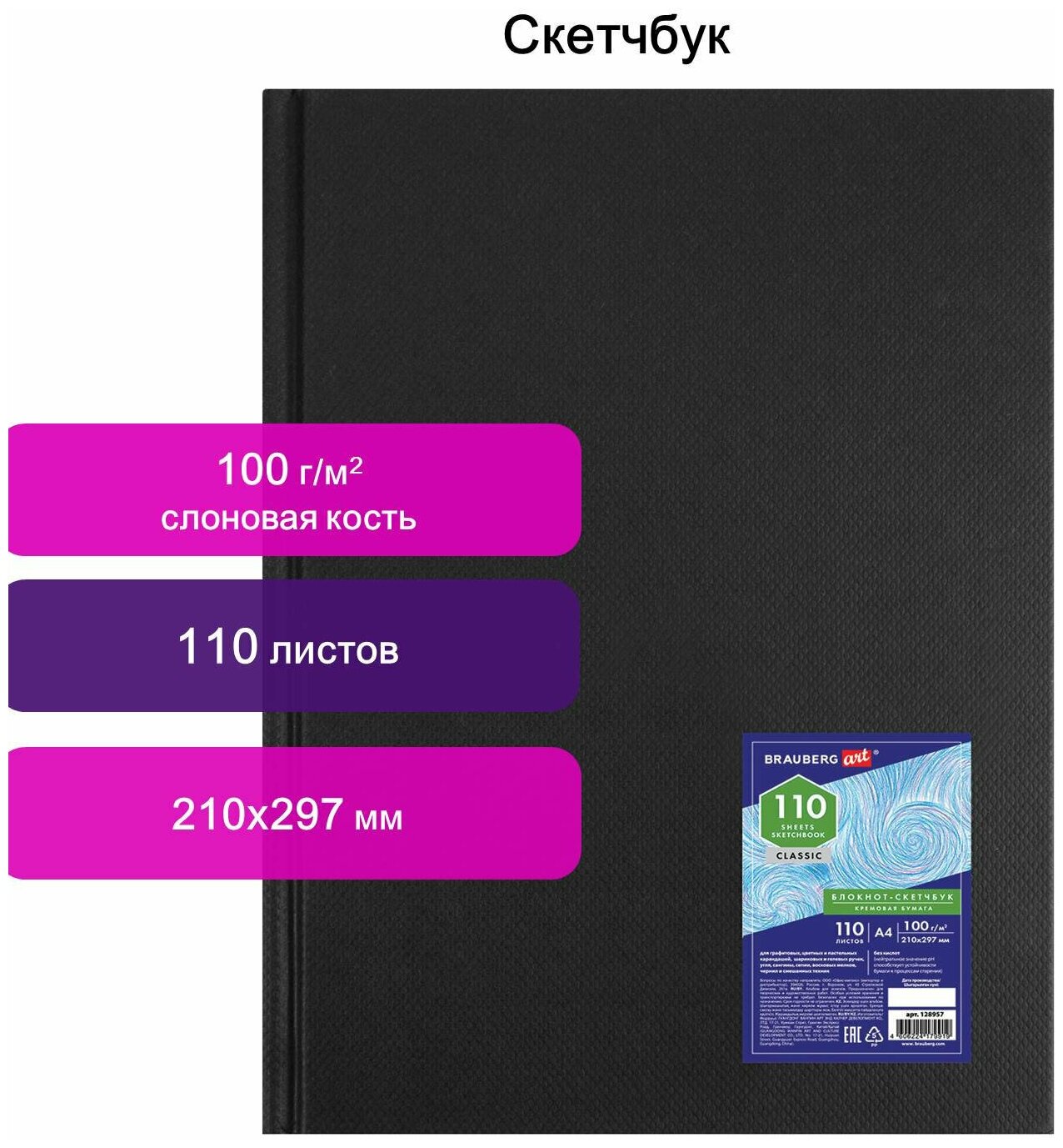 Сервис сравнения цен СкидкаГИД предлагает сравнить цены на товар «Скетчбук Brauberg Art Classic слоновая кость 210х297 мм 110 л. Art Classic Блокнот-скетчбук (кремовая бумага) А4 110 листов»