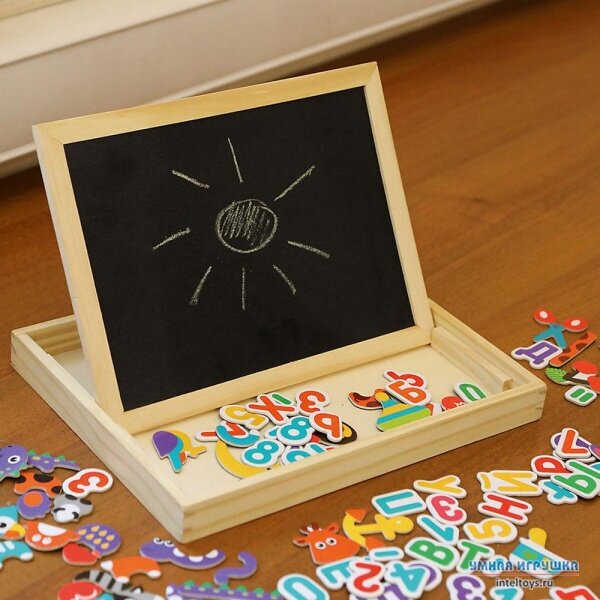 | Комплектация | магнитная азбука, маркер, мелки |