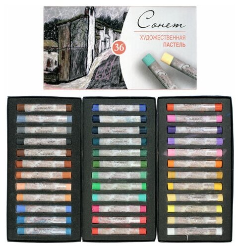 - Пастели сухие, 36 цветов, Ассорти, Сонет, ЗКХ Невская палитра, 7141225