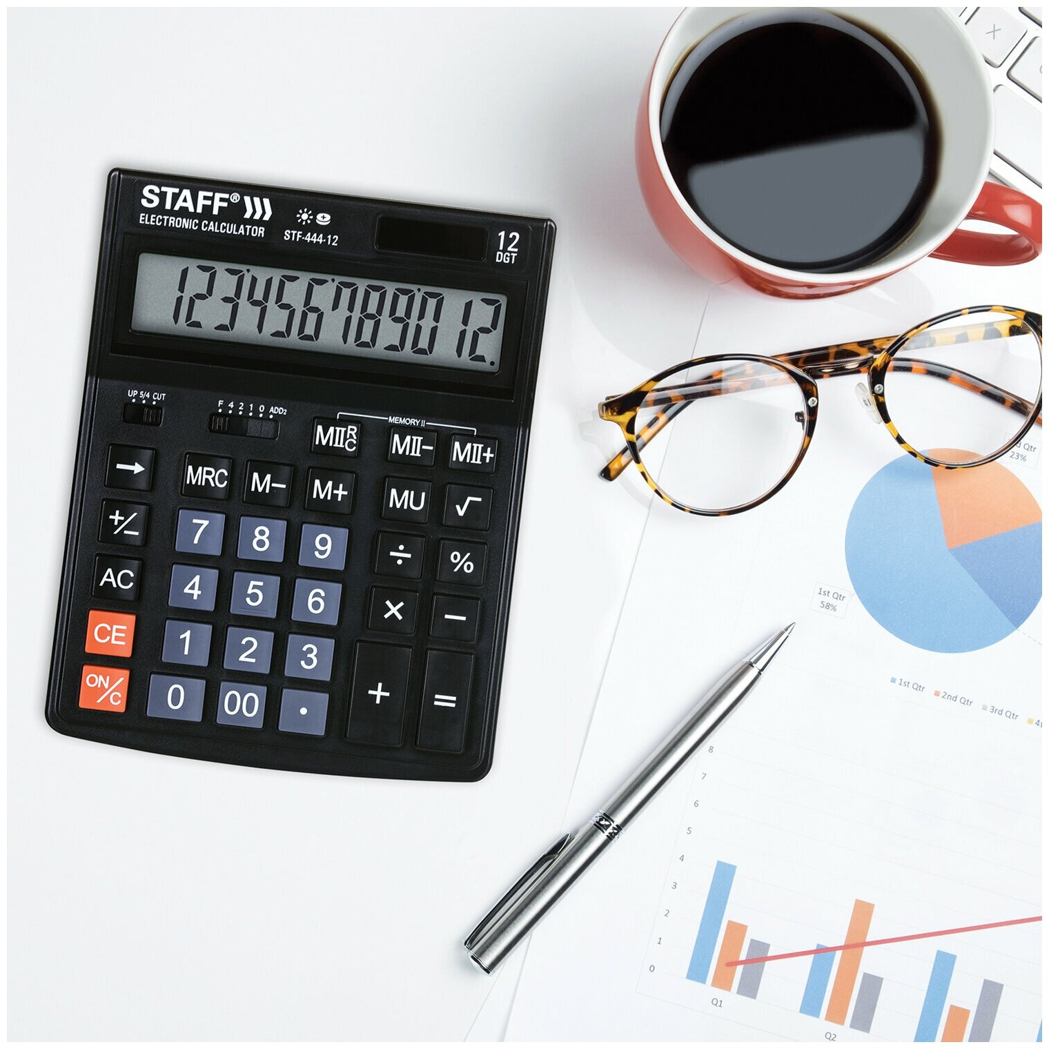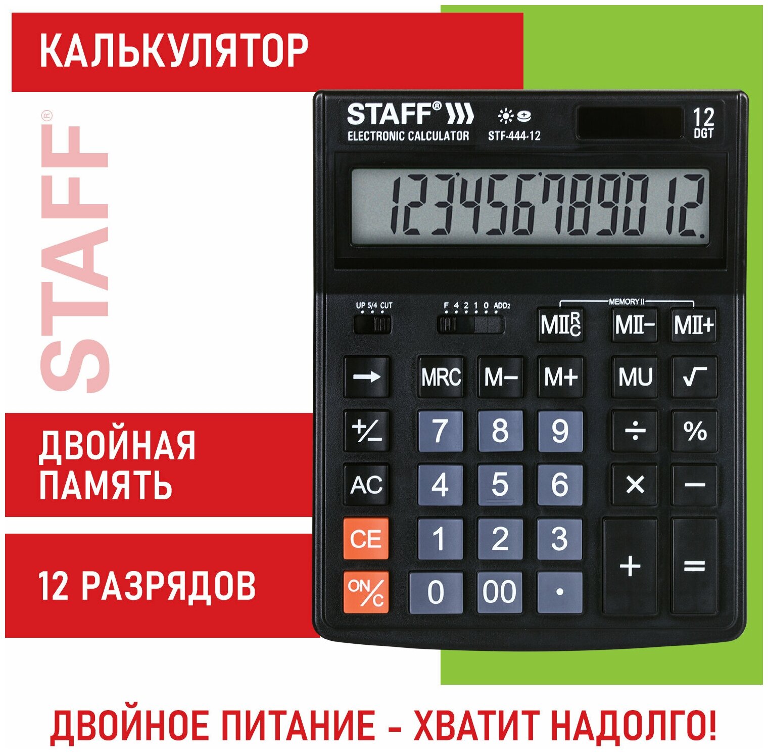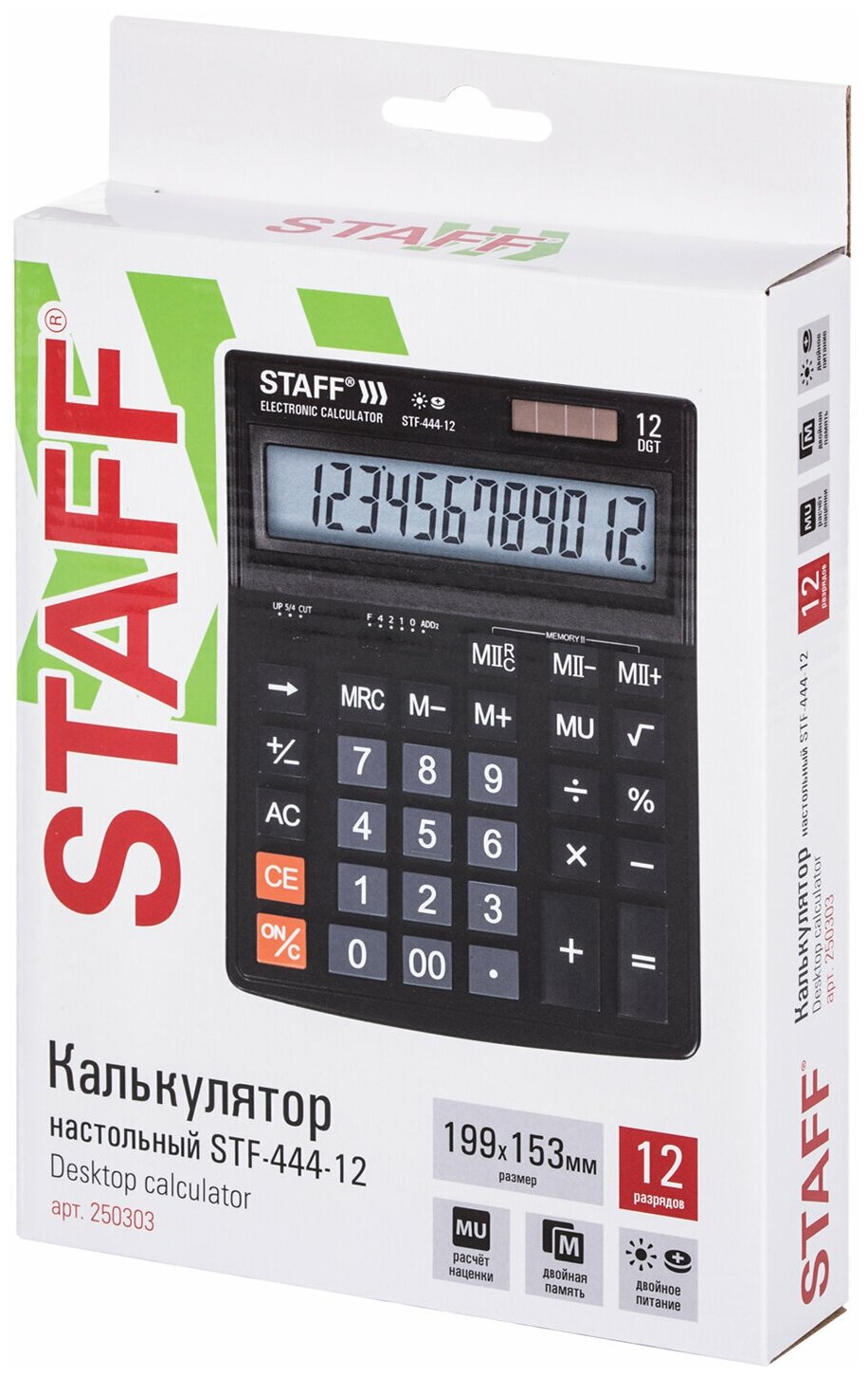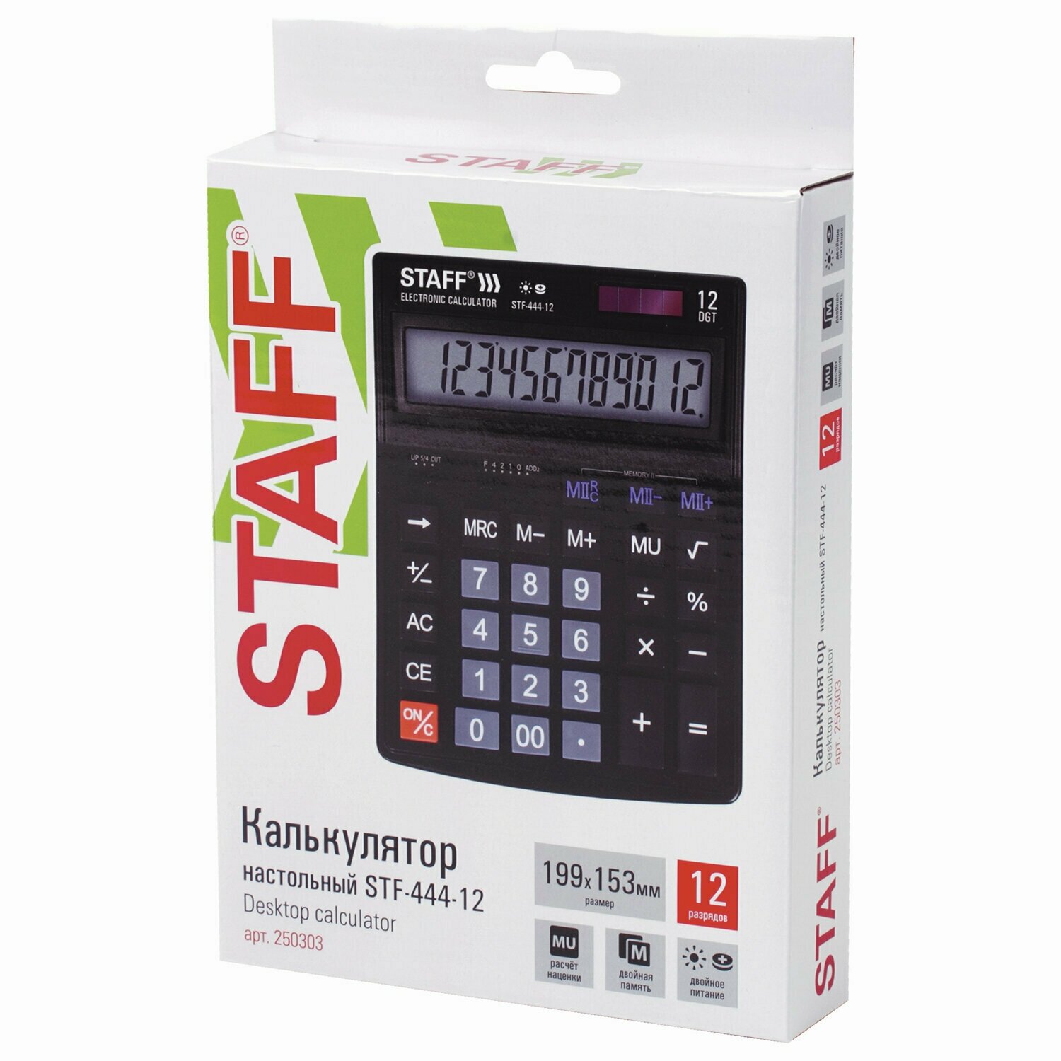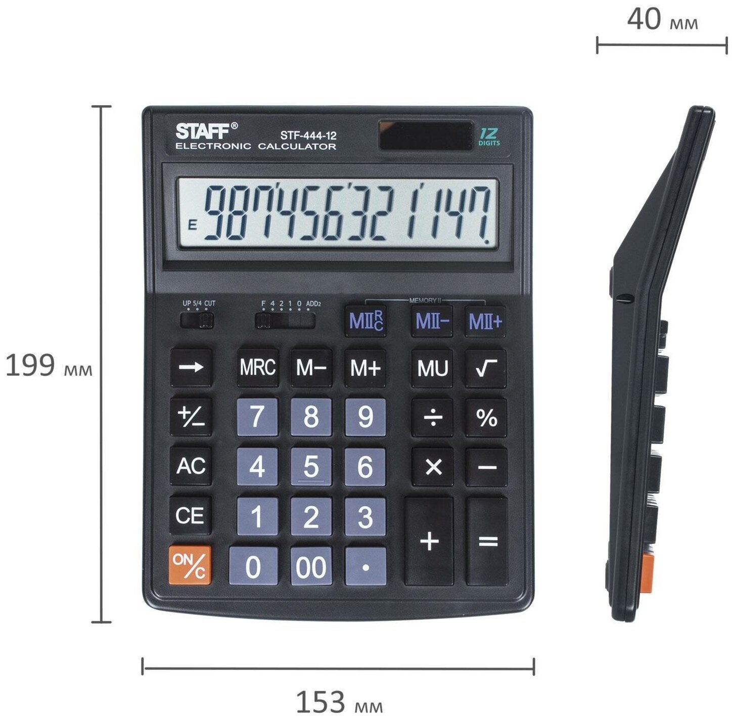 Калькулятор STAFF 12-разрядный черный Калькулятор настольный STF-444-12 (размер: 199x153 мм)