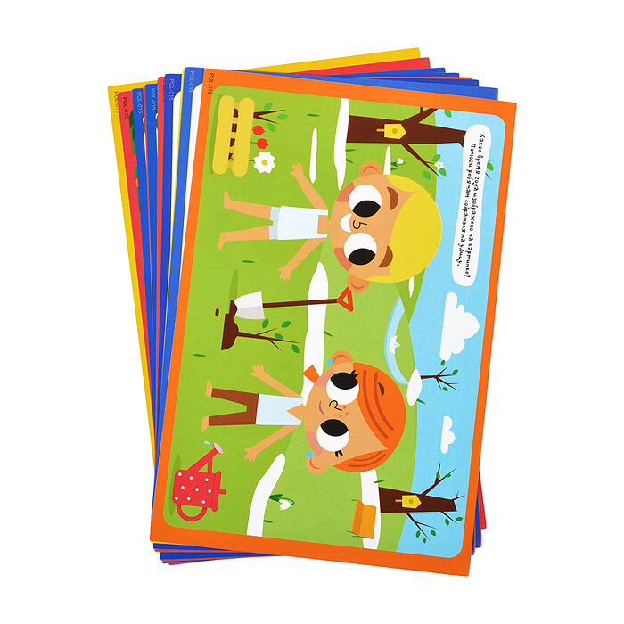 Комплектация | 40 магнитных элементов Времена года, 20 заданий на тему Времена года, 1 игра-ходилка, магнитные переодевания |